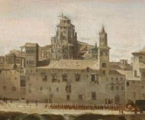 Фрагмент картины "Вид на Сарагосу в 1647 году" Хуана Батисты Мартинеса дель Мазо. В центре — купол Ла Сео.