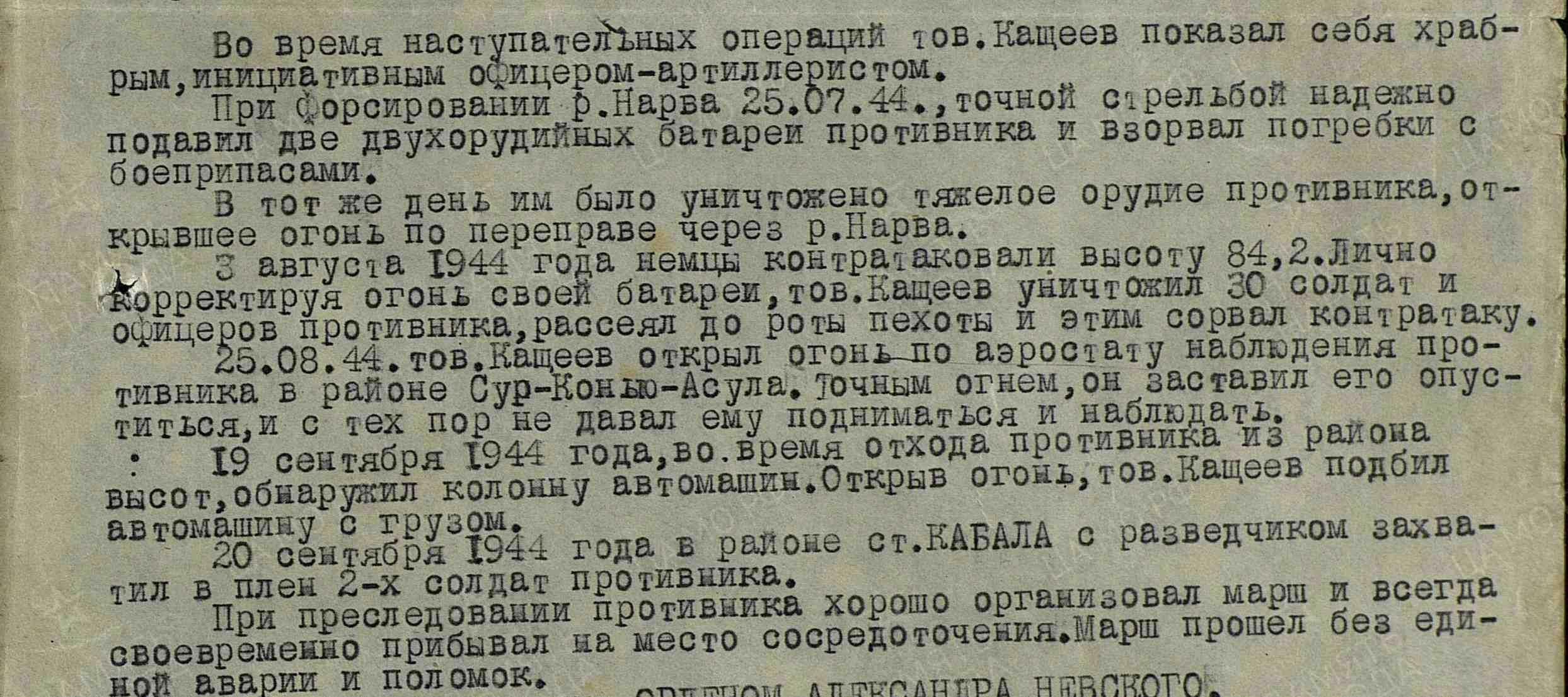 Тогда, может быть, что называется «награда нашла героя»? То есть с запозданием отмечен былой подвиг? Тоже вряд ли. Как видно, например, из представления к награждению Орденом Александра Невского (аналогичное есть и по Ордену Отечественной Войны) - офицер был на виду, отмечены его заслуги, так сказать, «по совокупности». Едва ли в такой ситуации что-то существенное могло быть упущено, и вдруг «всплыло» бы через годы.