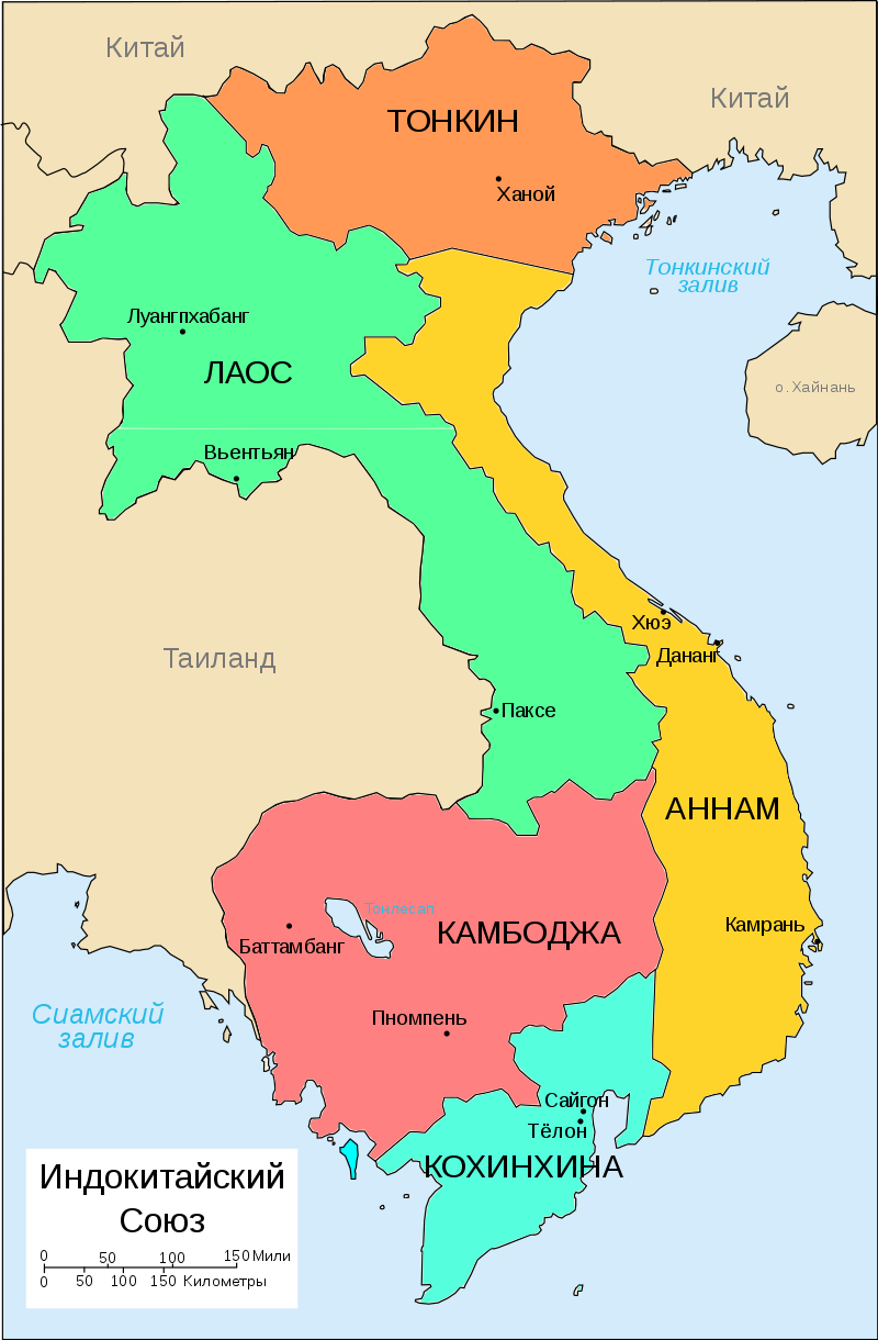 (карта Индокитайского союза. Четко видно, что такого государства как "Вьетнам" тогда не было. Были: Кохинхина, Аннам и Тонкин. Центром сопротивления любым захватчикам по некоторым причинам всегда был именно Тонкин)