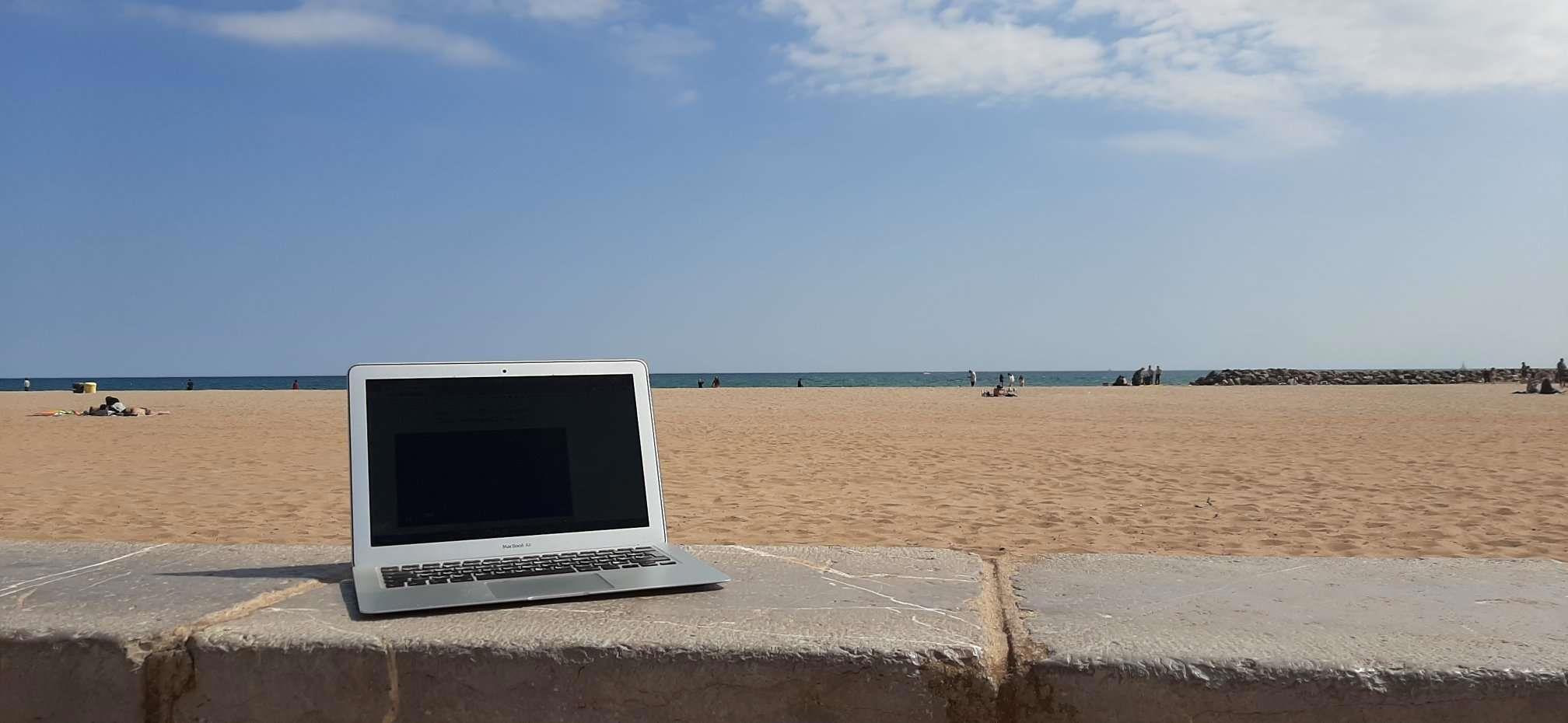 А лучше всего мне пишется на берегу моря. Очень люблю писать на пляже. Никто не мешает, солнышко, песочек, шелест волн... Вот так выглядит мое рабочее место: