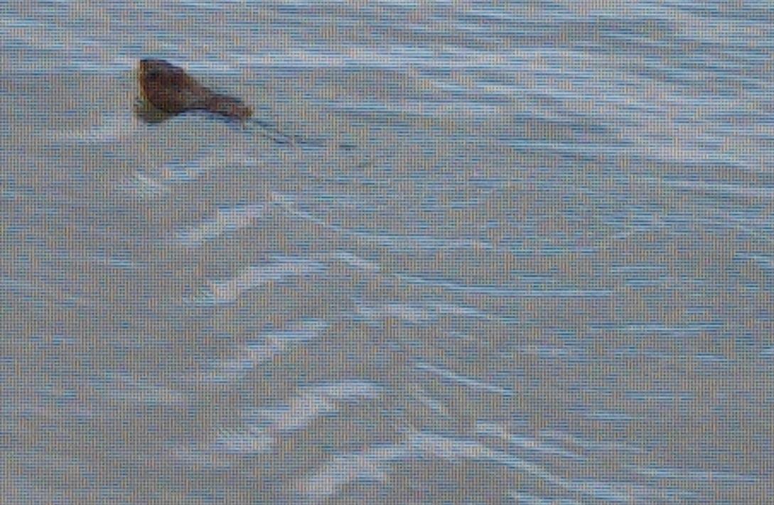 И поэтому она плыла вдоль пляжа. А толпа шла за ней. Ну как же. Живая ондатра! Плывёт!