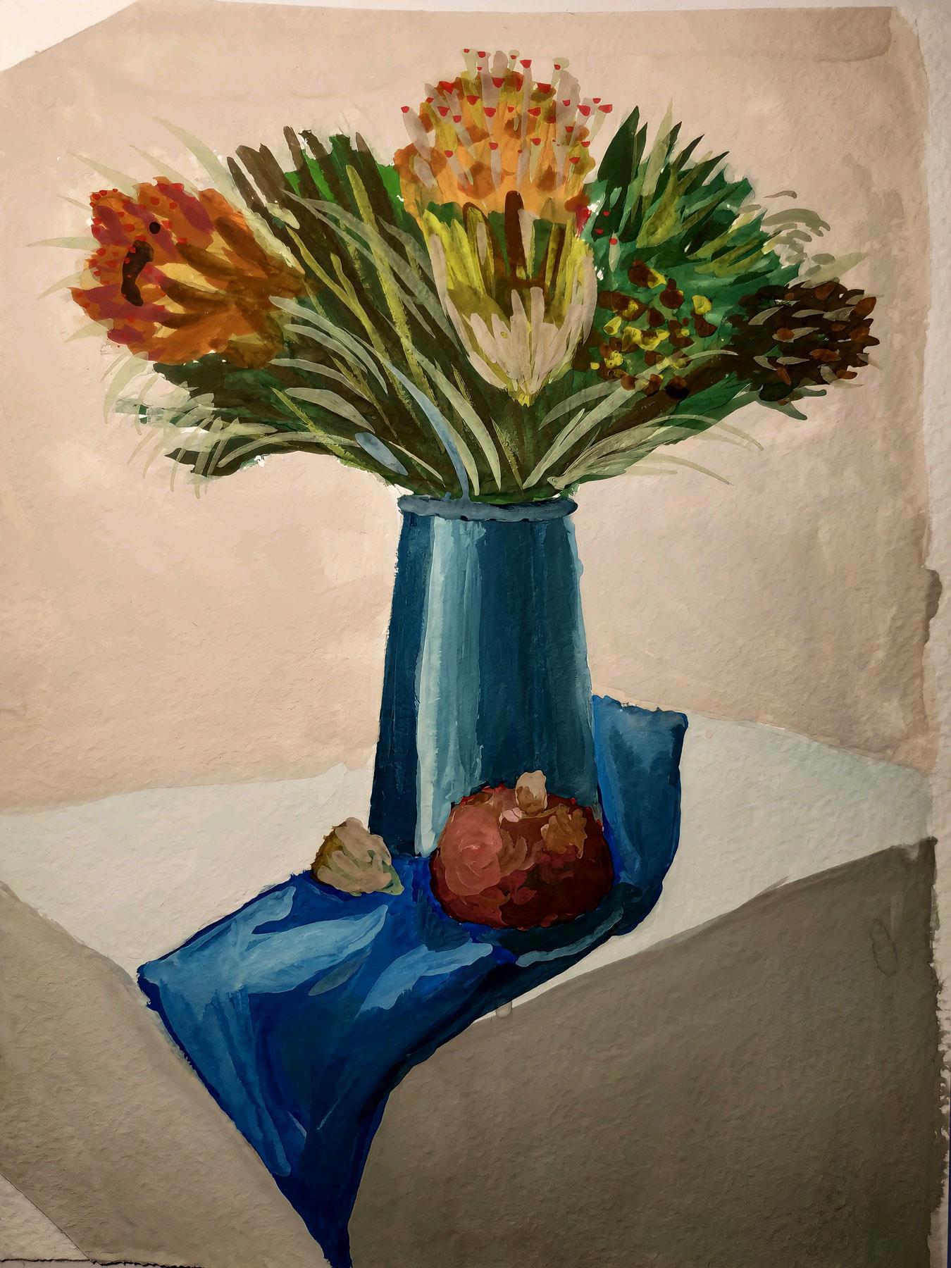 Это впечатляющий опыт, я поняла и прочувствовала насколько сложно рисовать на бумаге кистями, но в тоже время насколько это медитативный процесс, чем-то похожий на магию, не знаю как оно так получается, но оно так получается. Затягивает все, начиная от подготовки, размешивания красок, определения пропорций и заканчивая самим рисованием. Это так увлекает, когда сразу кистью ведёшь линии без предварительного сохранения и прочих преимуществ цифрового арта. Это не решение задачи, к чему я привыкла работая в фотошопе, а порыв души