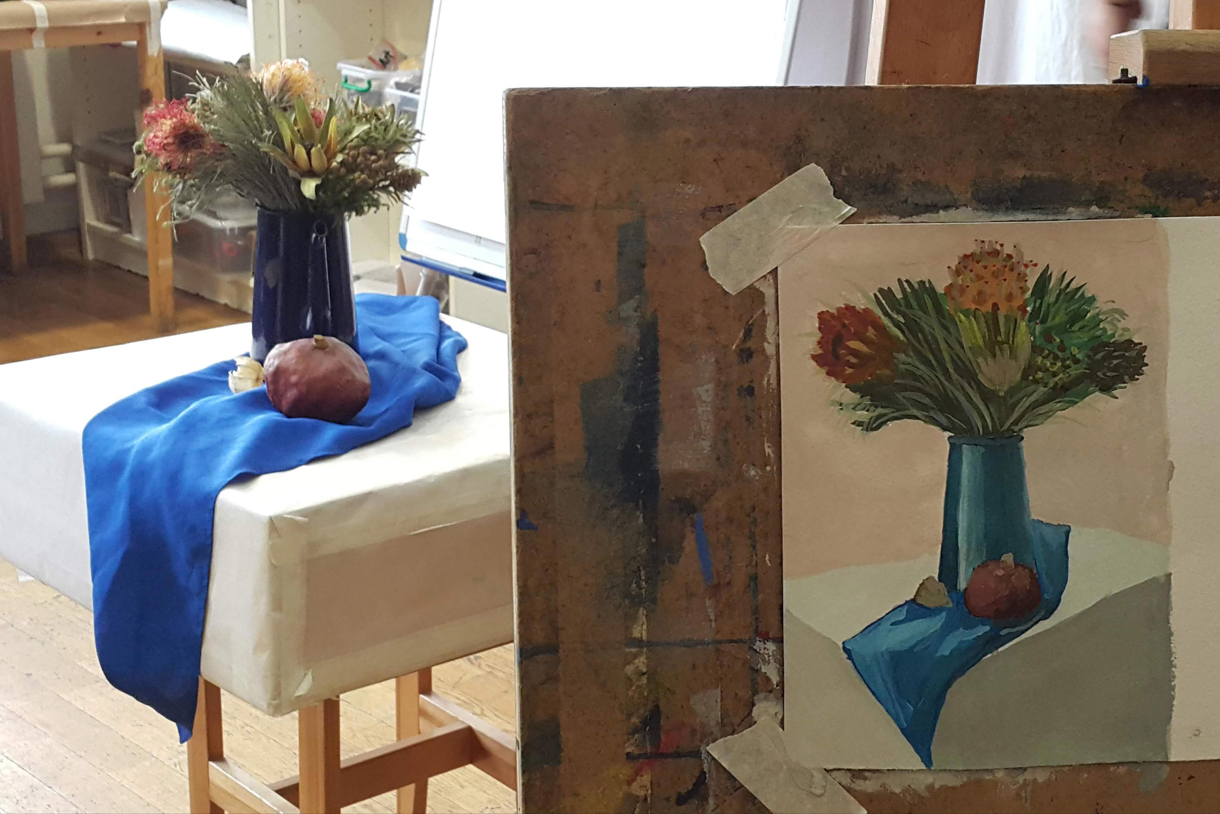 Рисовали мы натюрморт, а еще рассказали про цветовые гармонии, перспективы, пропорции и много всего ещё, было очень интересно