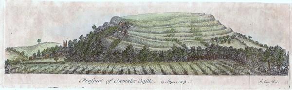 Рисунок 1723 года, изображающий холм к югу от деревни Сауз Кэдбери.