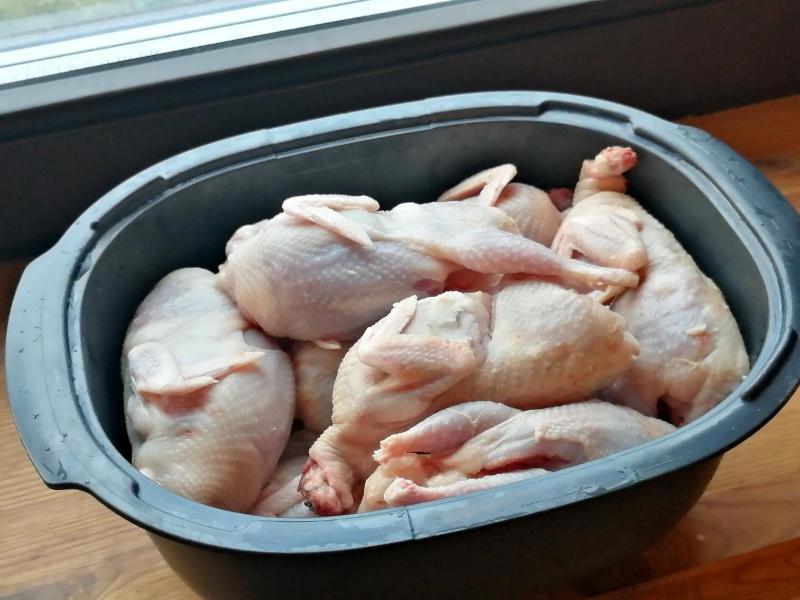 Но вот как только тушки сложены в промежуточную ёмкость и начинаешь их ощипывать – отношение к процессу и поциентам меняется. Это уже не птички, которые что-то там пищали пол часа назад, а только тушки, которые надо приготовить. Более того, супруга, которая едва не плакала над судьбой бедных птичек последние два дня их жизни, в конце концов присоединилась к процессу ощипа. А потрошили мы их уже вместе и без каких либо эксцессов. Ощипанная тушка уже совершенно спокойно воспринимается как тушка и ничего более. Как любая куриная из магазина.