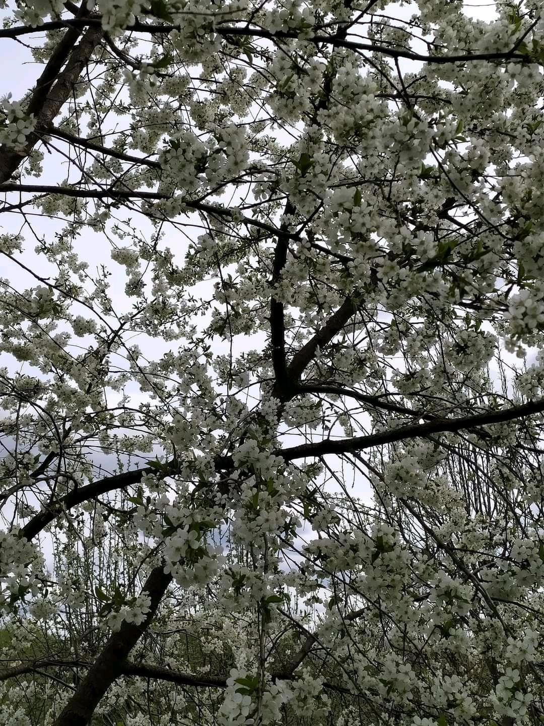 За ночь расцвели вишни! Правда, пчёл мало, потому что ветер. Но красота... Аж дух замирает.