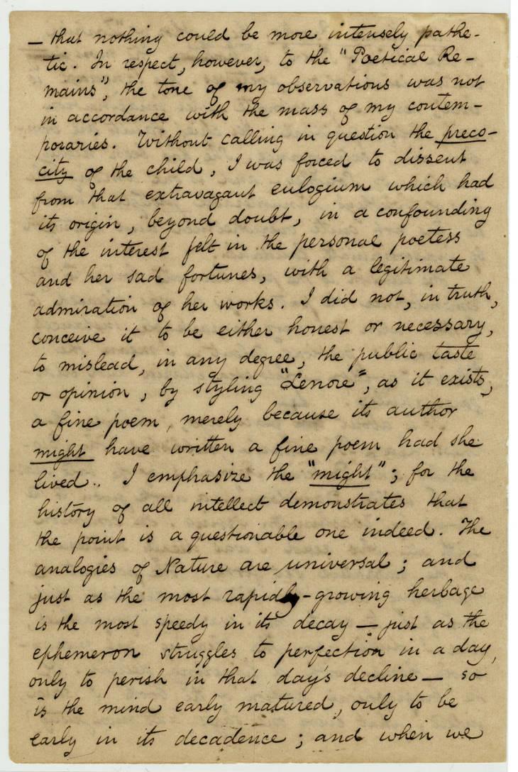 И вот третий раз я влюбилась в почерк Эдгара По! От него осталась привычка сначала написать слово, а потом расставить чёрточки и точечки (t — в слове gentle заметно, i).