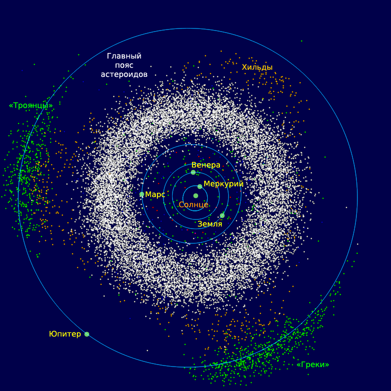Между Внутренней и Внешней областями солнечной системы располагается Пояс астероидов