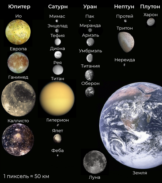 У Земли (Луна) и Марса (Фобос и Деймос) имеются спутники. Спутники также имеются и у планет внешней области Солнечной системы.