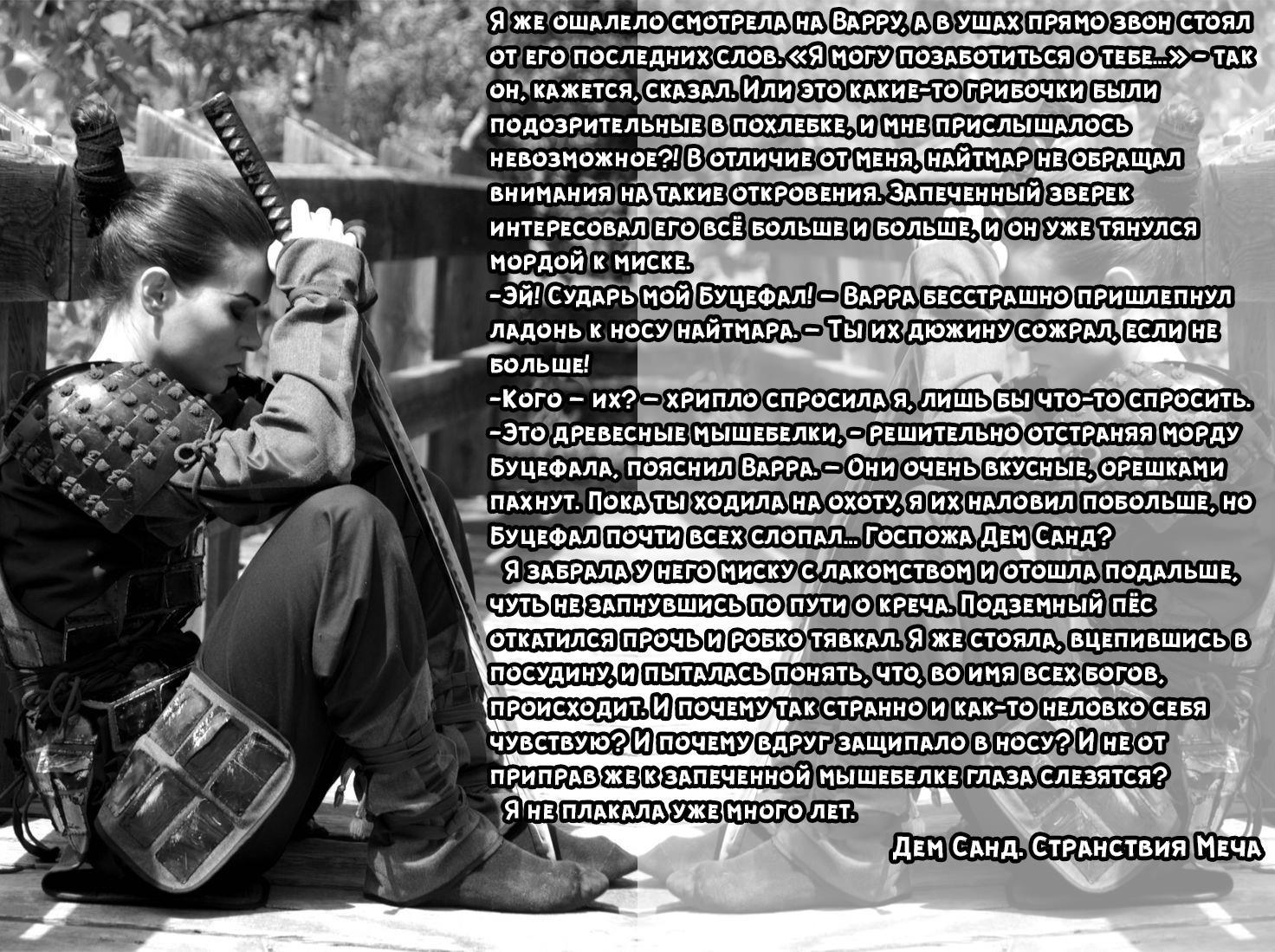 И я так скромно победоносно двигаюсь к финалу первой части "Дем Санд". Поэтому опять сразу два тизера: 24-ой главы и Интерлюдии после 25-ой. Кстати, в один из дней будет плотный такой парад публикаций... Ну да это со временем=)))