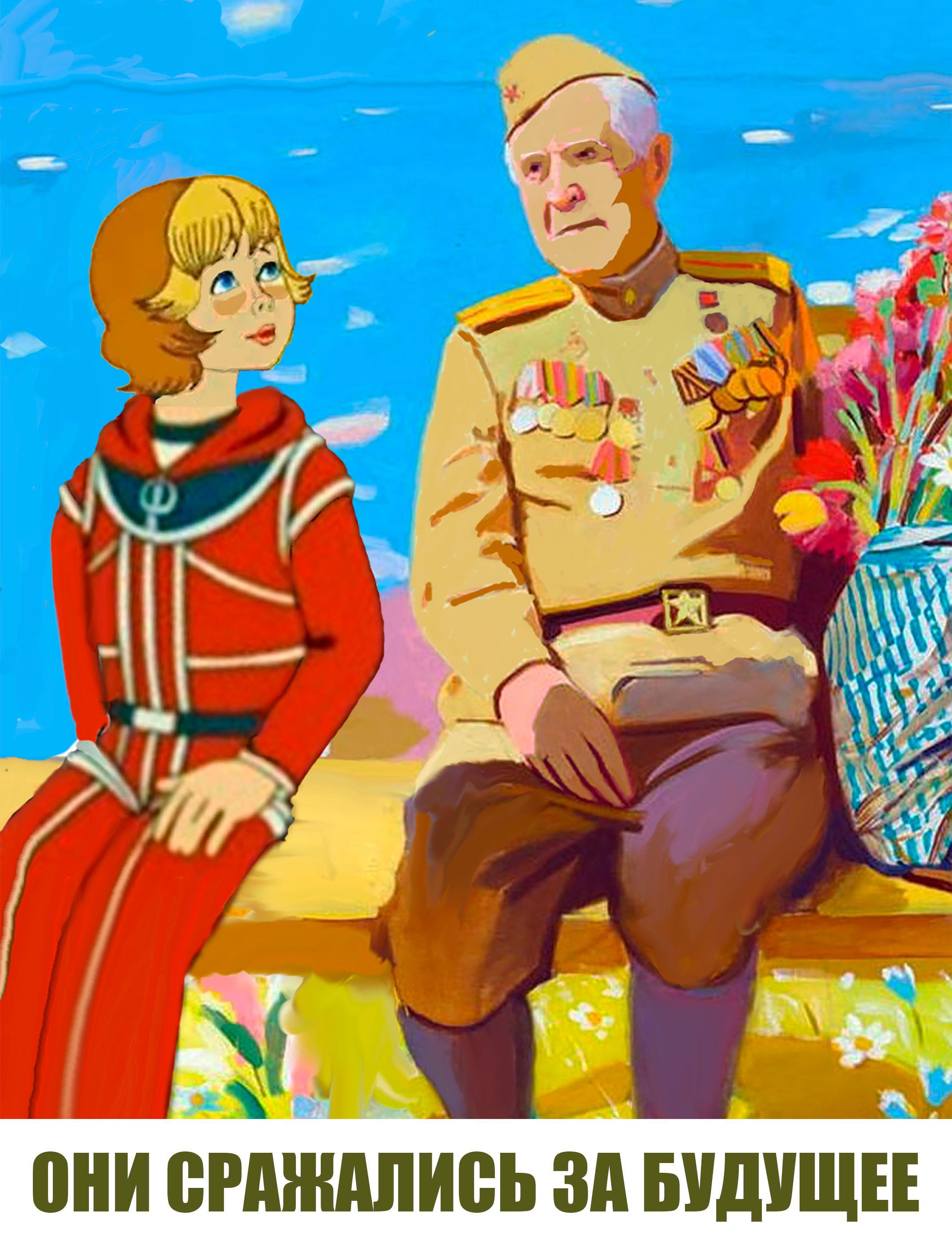 Я фантаст, поэтому и плакат у меня получился, конечно же, тематический, и для старшего поколения. Сегодняшнее может и не знать персонажа слева. У каждого времени свои герои.