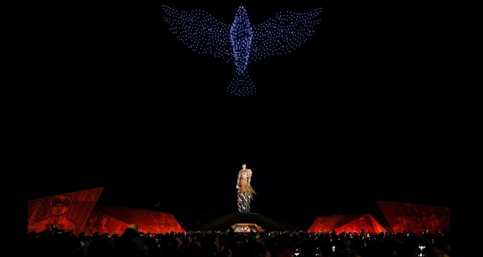 Ржевский мемориал Советскому Солдату. "Летящий журавль" из светового шоу.