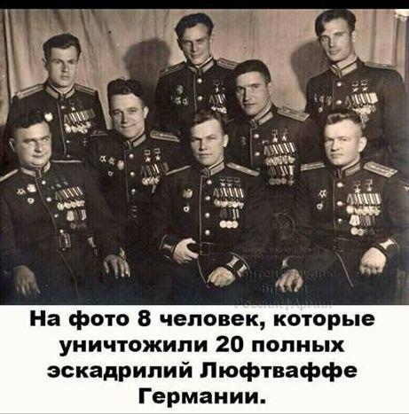 Дважды Герой Советского Союза летчик-истребитель Дмитрий Борисович Глинка--(около 300 боевых вылетов и 50 лично сбитых самолета противника). Трижды Герой Советского Союза Иван Никитович Кожедуб(330 боевых вылетов и 62 лично сбитых самолета). Дважды Герой Советского Союза летчик-истребитель Павел Яковлевич Головачев(385 боевых вылетов и 26 лично сбытых самолета).