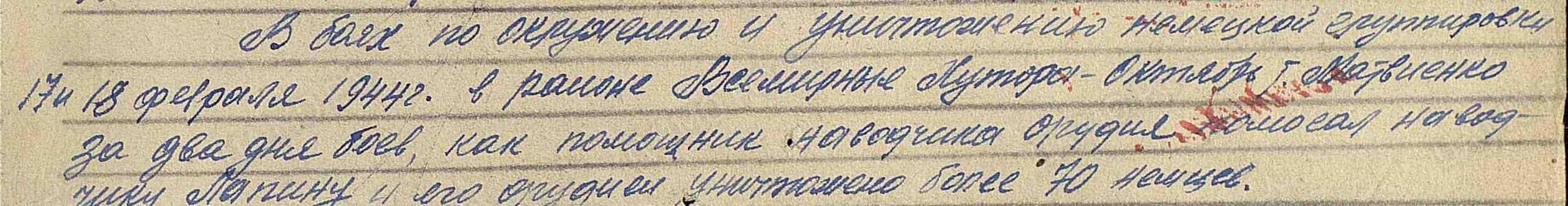 Удалось найти архивную запись подвига. Его артиллерийское орудие уничтожило 70 немцев за два дня боев.