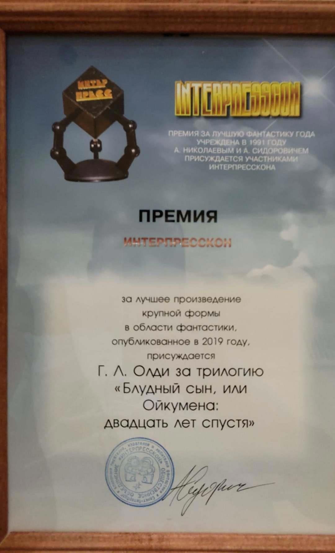 Автор: Генри Лайон ОлдиРоман Г. Л. Олди «Блудный сын» из космической эпопеи «Ойкумена» получил литературную премию в области фантастики «Интерпресскон-2021» в номинации «крупная форма (роман)». Ура, товарищи! И спасибо всем-всем: кто организовал, кто выдвинул, кто голосовал.