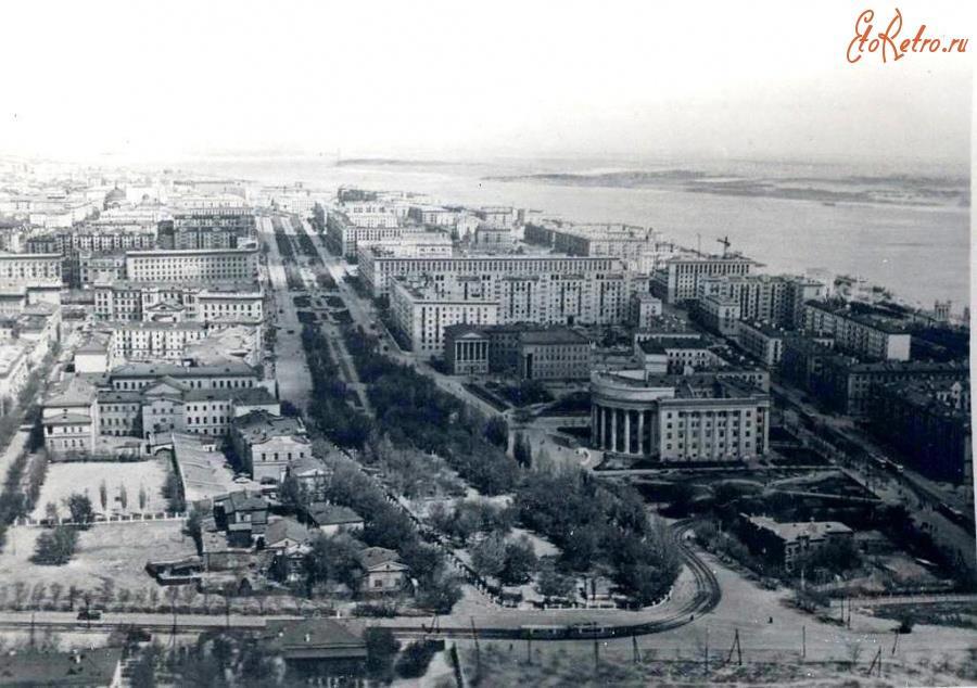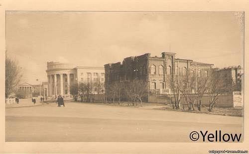 О том, зачем ребята-футболисты, которых так обломали с подарками, оказались в этом дворе, можно только догадываться. Уж точно, они в тот момент не думали о Доме Архитектора, который находится в этом дворе, скрытый от глаз подобно жемчужине в раковине, хотя наверняка, как волгоградцы, знали о его существовании. Рискну предположить, что у них "с собой было" и они попросту решили выпить в этом дворе, хотя настаивать на своей версии, конечно, не буду. Но факт есть факт - они там оказались. Посмотрим на то, как выглядело это место до постройки "Современника" - 1960 год: