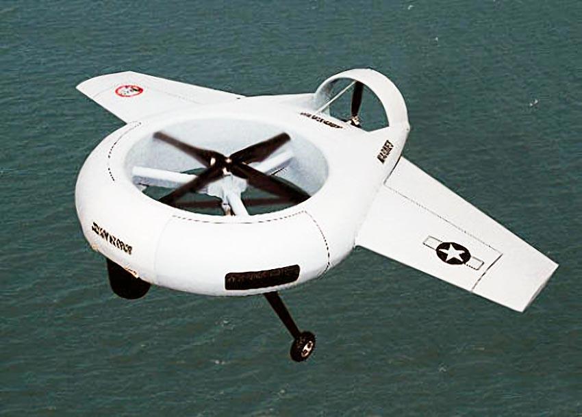 Машину поднимают два несущих винта, находящихся внутри тороидального корпуса. Преимущества такой схемы сегодня сомнительны (сводятся к тому, что винт не заденет случайно препятствия, вблизи которых машина действует), но уже в следующем десятилетии – несомненны. Дроны играют важную роль на поле боя 2010-х не в последнюю очередь потому, что современные армии имеют в лучшем случае слегка прокачанную ПВО образца Холодной войны, в худшем вообще никакой. Такая ПВО рассчитана на работу по «жестким» целям: тяжелым сверхзвуковым реактивным самолетам и крылатым ракетам. И пользуется поэтому в основном ракетами… каждая из которых стоит дороже простенького дрона. Еще есть зенитная артиллерия, но она оптимизирована для ближней ПВО против идущих прямо на пушку ракет/вертолетов, и для работы по маленьким быстроходным целям на пределе дистанции визуального наблюдения подходит плохо.