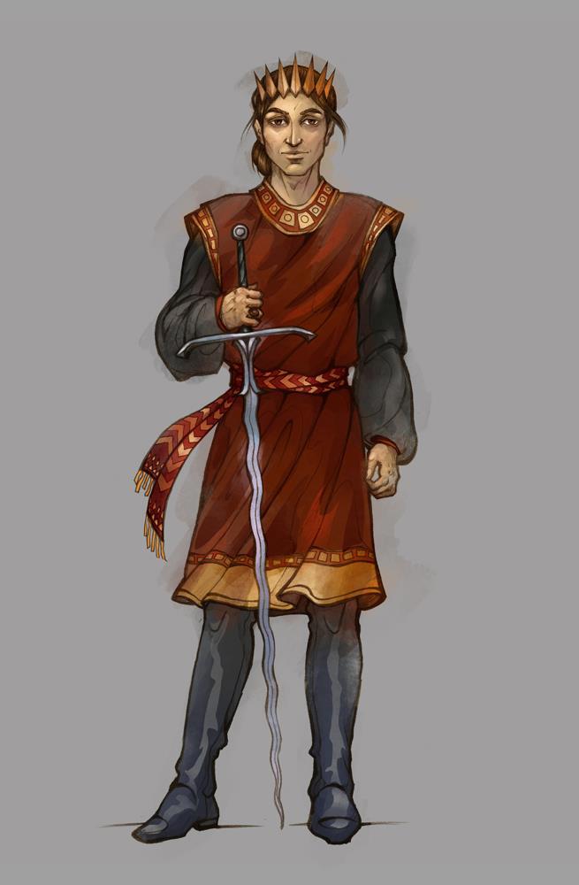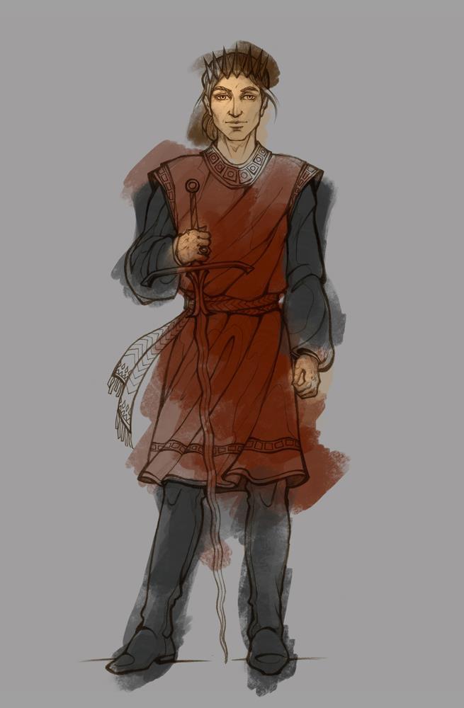 Этому доброму молодцу не позавидуешь, судя по выражению лица, но парень таки весьма колоритный вышел. А еще мне отдельно полюбилась цветовая гамма его прикида, да и вообще всей работы. Земляной красный, охристые блики золотишка, выцветший черный - вдохновлялась караваджизмом слегка, ясное дело.