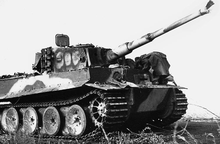 Тигр с разбитой пушкой - разнесло дульный тормоз и конец ствола.