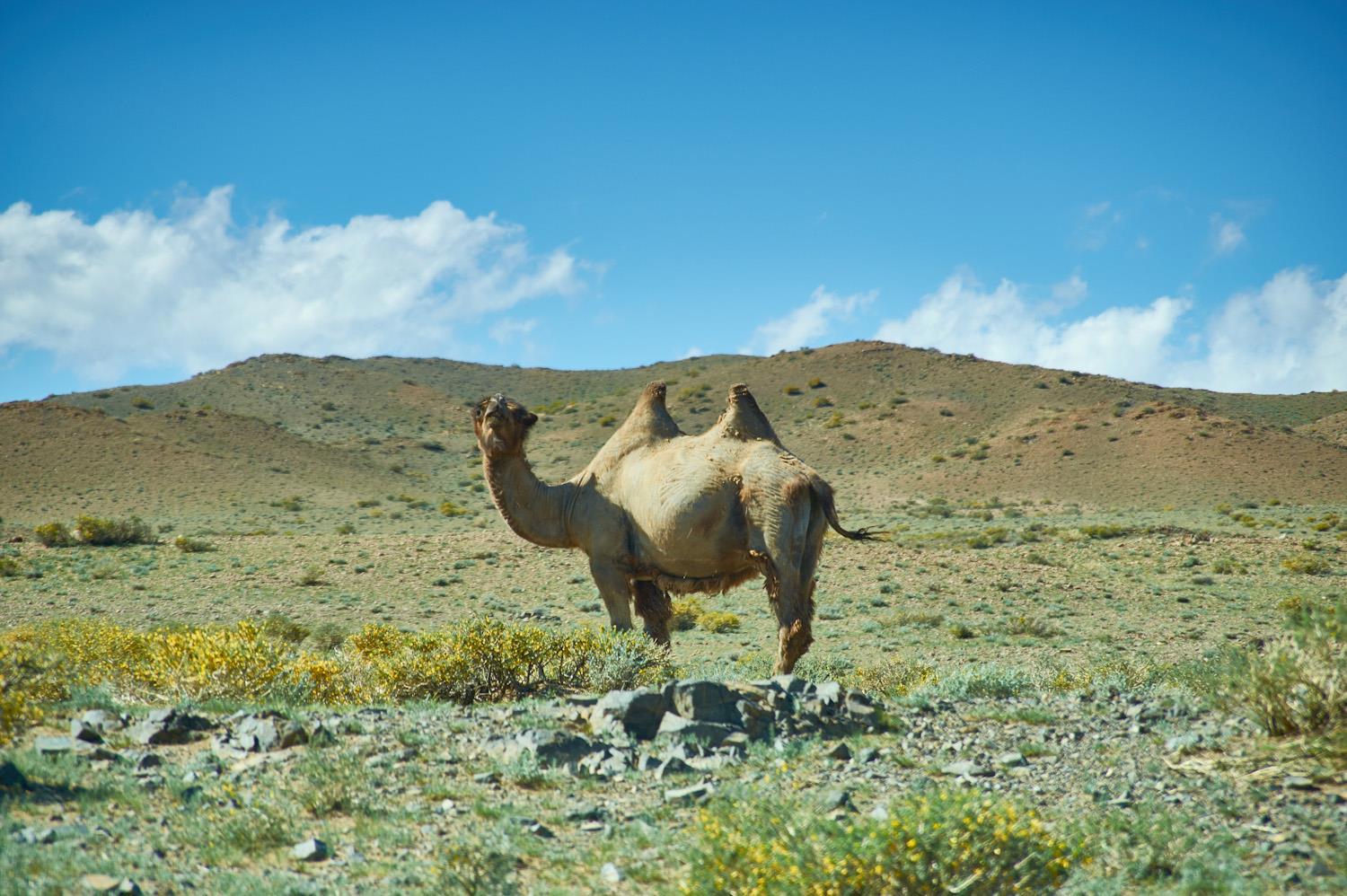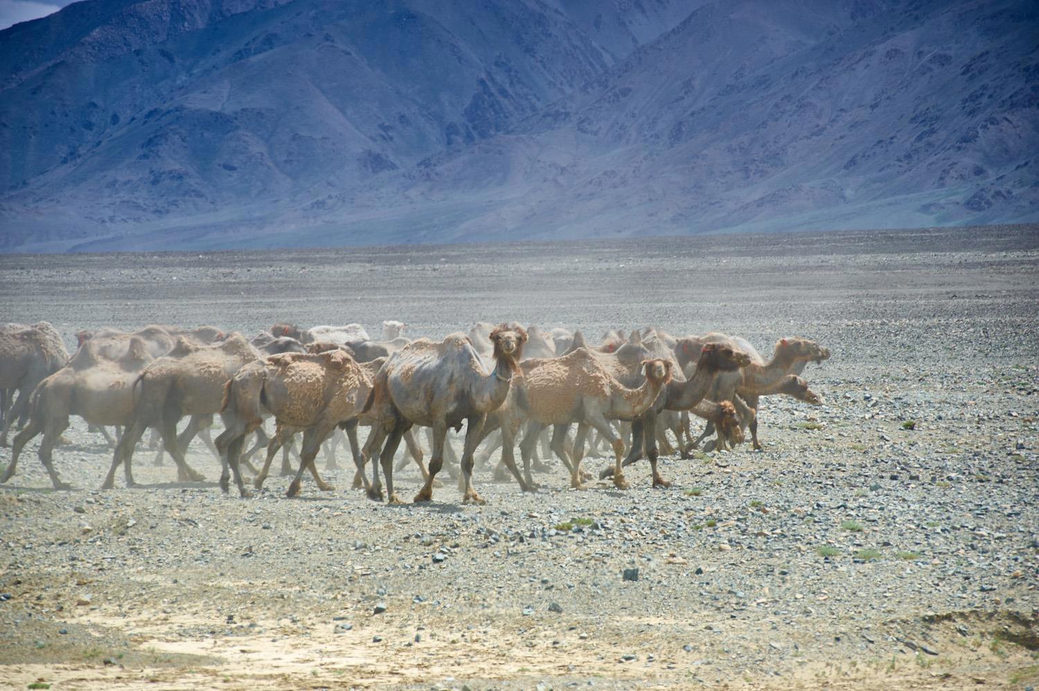 На перегону к озеру Хергаз мы увидели одичавших верблюдов.