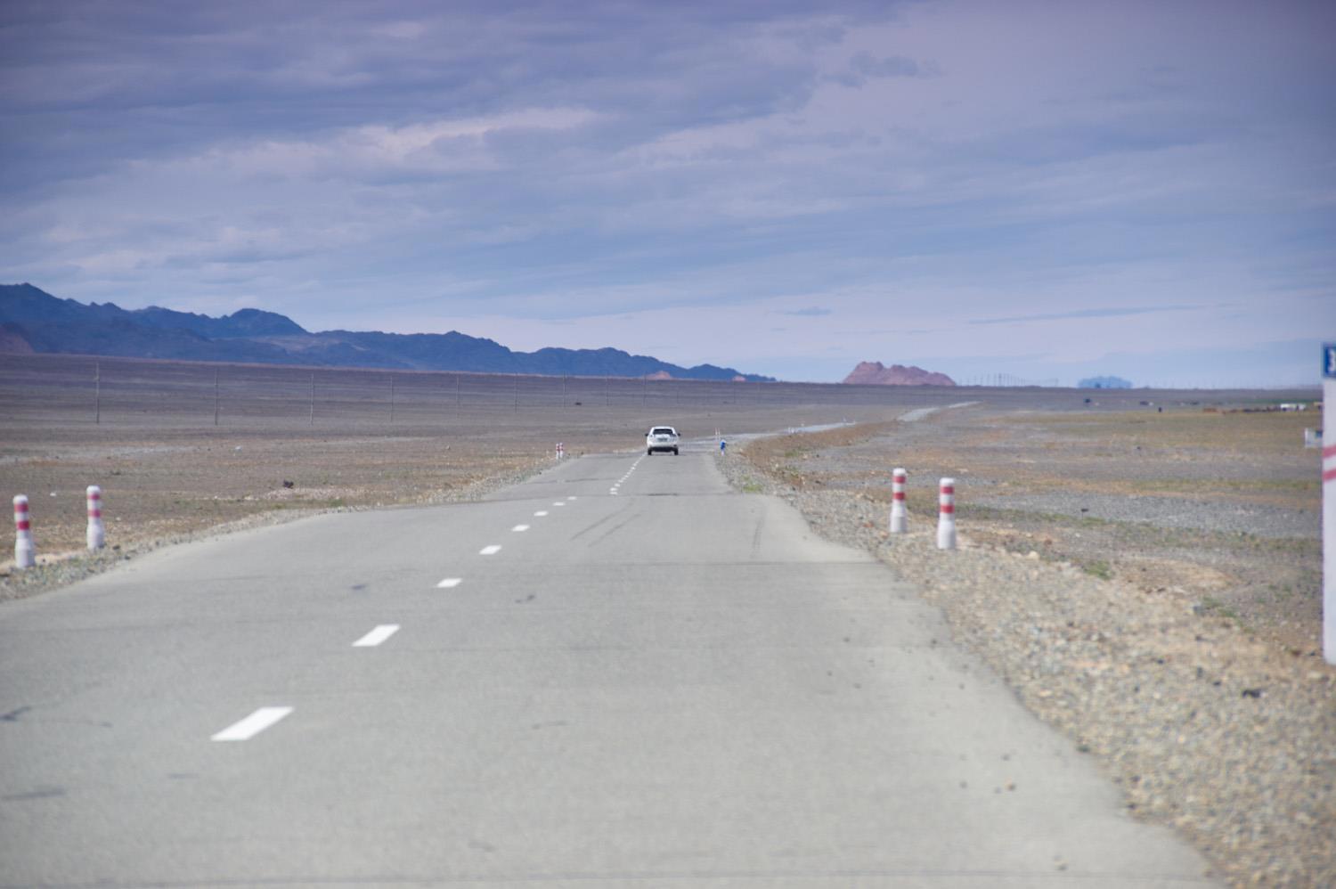 Австострада черех Хуйцин Хови. Вокруг безжизненная пустыня.