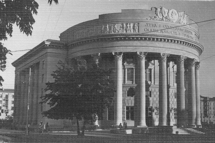 По сути, это не одно, а три здания с общим двором - очень оригинальный проект Вадима Масляева - одного из плеяды великих архитекторов, создавших послевоенное лицо центра Города. Фотографии разных лет. Пятидесятые-шестидесятые годы двадцатого века - рядом ещё нет высотных домов, построенных в конце шестидесятых-начале семидесятых: ни "Пионера" слева, ни "Современника" справа: