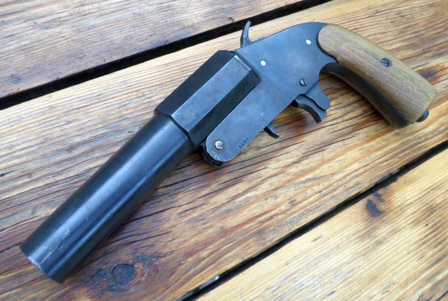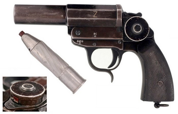 По другую сторону баррикад – в Германии тоже нашлось немало людей с нестандартным мышлением и кому-то из них попались на глаза ракетницы, которые грустно лежали никому не нужными на военных складах. Вид у них был грозный и не скажешь, что эта штука нужна для того, чтобы просто огоньки в воздухе зажигать: