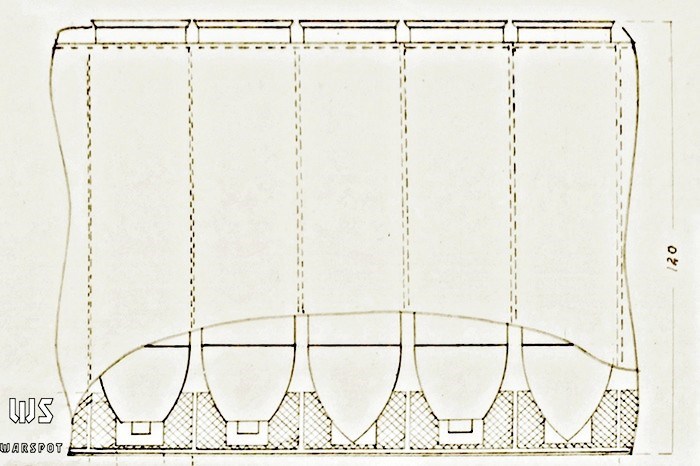 Чертёж подсумка для боеприпасов (обратите внимание на специальные встроенные предохранительные колпачки для взрывателей):
