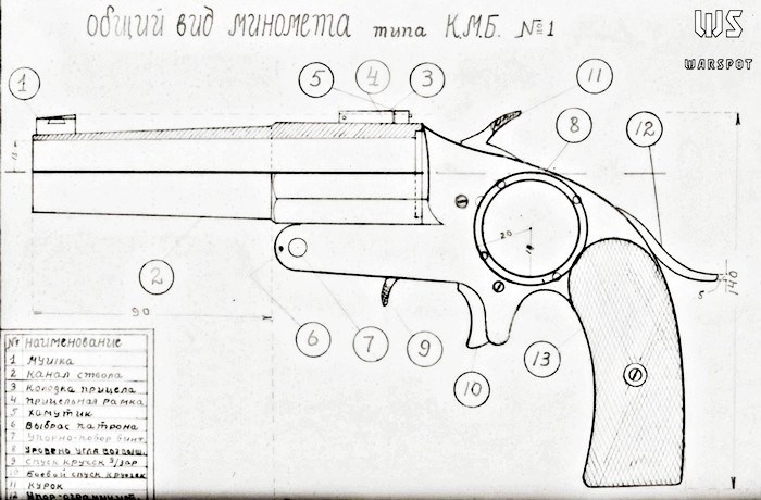 Чертёж пистолета, выполненный самим Барановым (как конструктор могу подтвердить - сделано очень хорошо и профессионально, только шрифт немного "подкачал"):