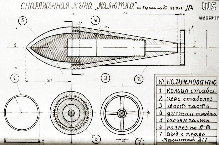 Чертёж боеприпаса - мины со стабилизатором (обратите внимание - это вариант 2):