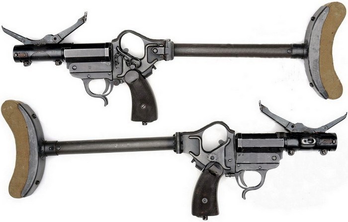 Разумеется, Баранов был не единственным в Красной Армии специалистом, который был озабочен увеличением огневой мощи бойца. Если его пистолет-миномёт выглядел весьма скромно, то представьте себе реакцию немца, или румына, или француза, или итальянца, или венгра, или… ну или любого другого головореза из Евробанды, напавшей на СССР под знамёнами Гитлера, когда перед его носом появится красноармеец вот с такой штукой в руках: