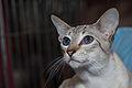 Сиамская кошка имеет весьма характерную внешность, отличительными чертами которой являются тонкое, длинное, трубообразное гибкое тело, голова в виде длинного клина, большие миндалевидные косо поставленные глаза ярко-синего цвета, очень большие уши, широкие в основании и заостренные на концах, поставленные таким образом, чтобы между мочкой носа и кончиками ушей образовывался равносторонний треугольник. Шерсть короткая, плотно прилегающая к телу, без подшерстка. Очень длинный хлыстообразный хвост, тонкий от самого основания с заостренным длинным кончиком.