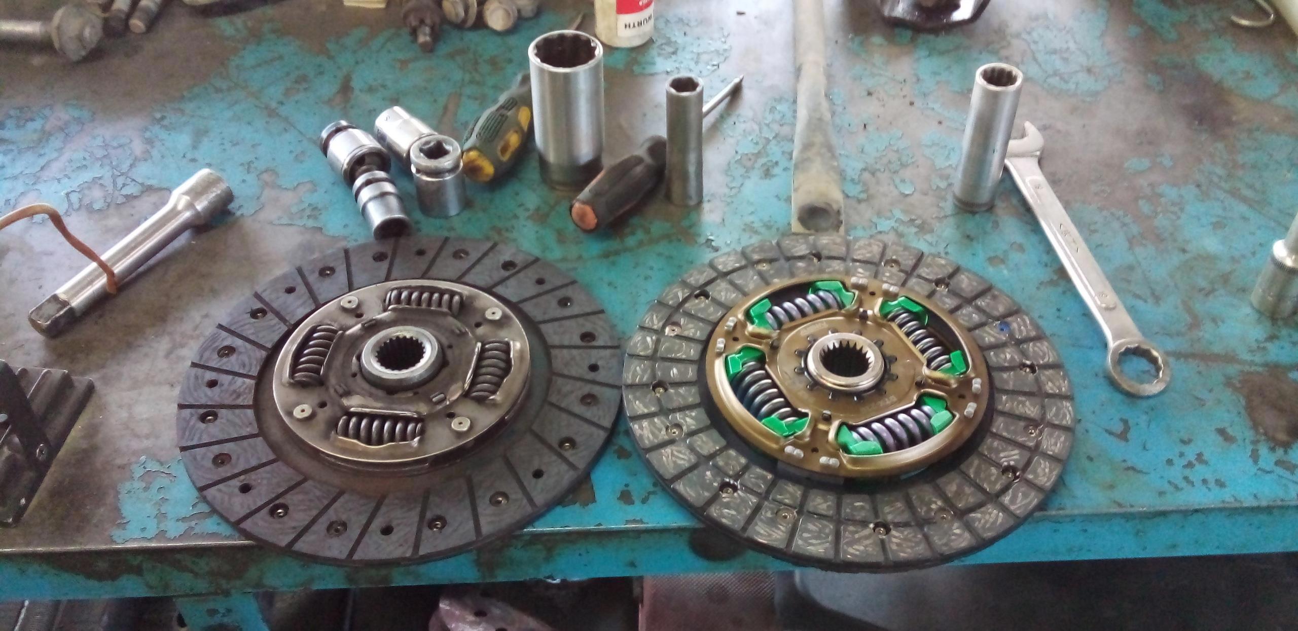 Где-то этому дядьке поменяли сцепление, которое перестало нормально выжиматься. Что делать? Правильно! Вырезать в колоколе люк, и положить под корзину шайбочки, не снимая коробки. Это просто сумрачные гении! Сцепление стало чуть лучше, но всё равно не выжималось до конца.