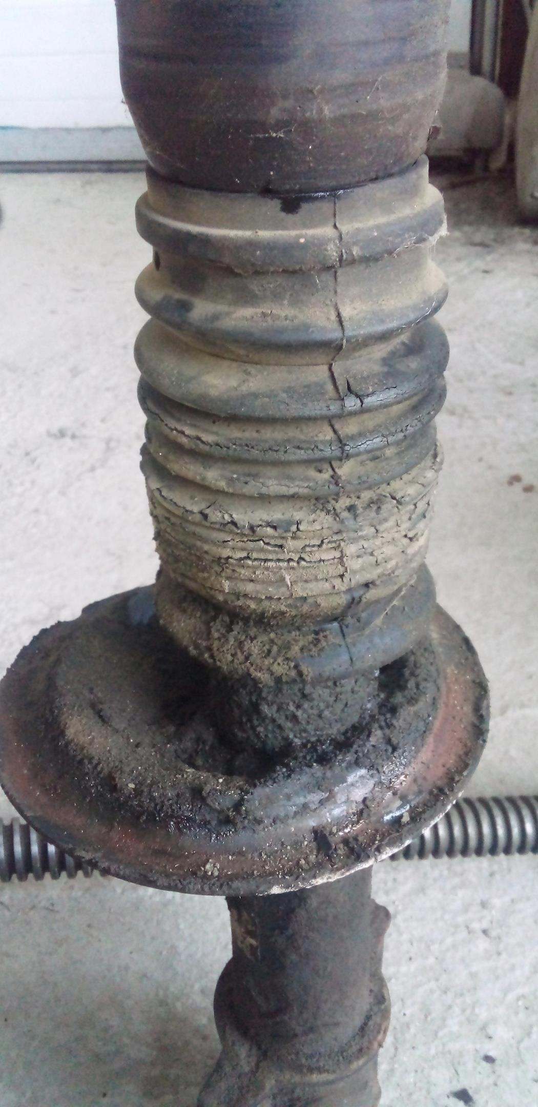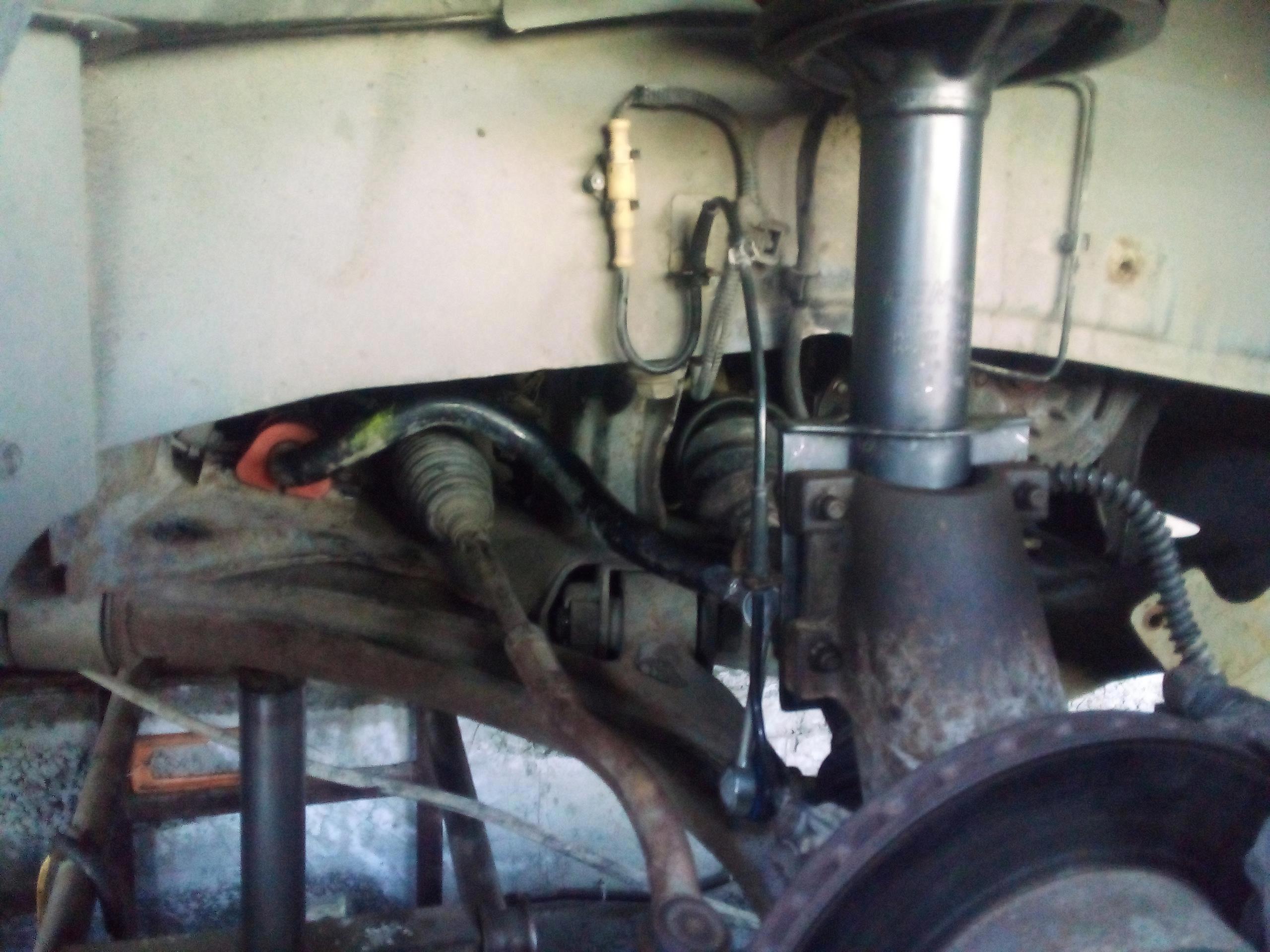 Задача там была неподъёмная: заменить стойки вкруг, втулки на рессорах, передние стойки стабилизатора и втулки, передние шаровые опоры. Решил я начать с переда, и с правой стороны. Где и обнаружил вылетевшую втулку.