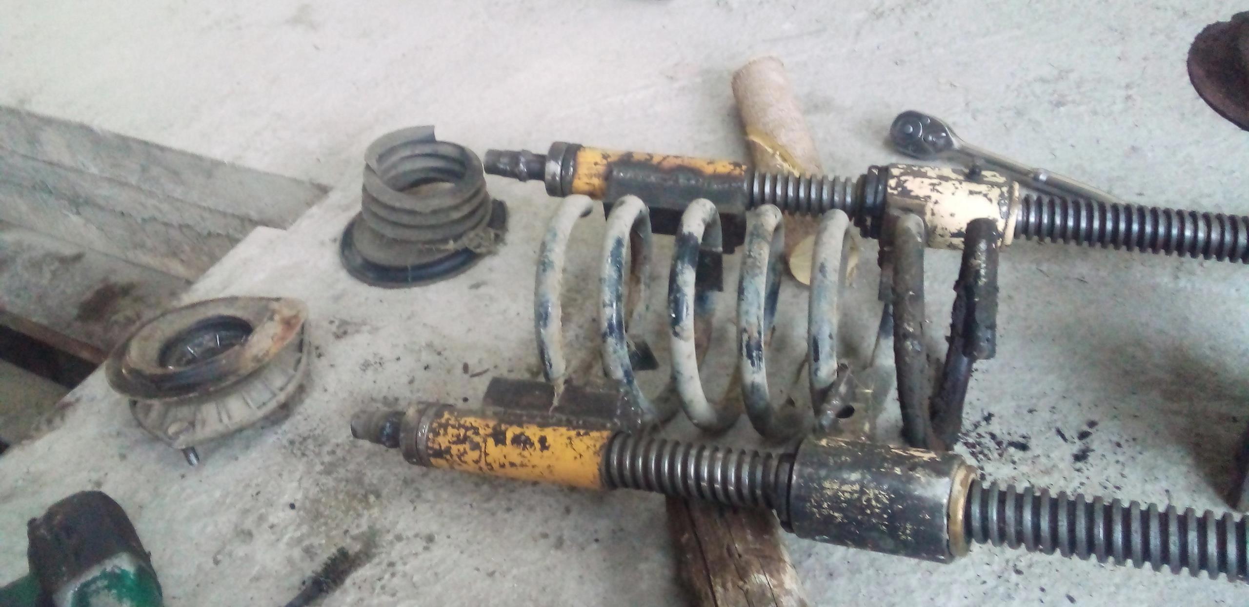 И там всё вот такое! Состояние ужасное (лучше чем та карина, но всё же)! На следующей неделе ещё зад ему перебирать... Там привезли 6 сайлентблоков, 2 в ухо рессоры, и ещё 4 каких-то загадочных. Я не нашел куда их можно всунуть, а я искал! Говорят, "нам их в магазине дали", вместе с неподходящими стойками. Завалялись видимо, их и пихнули в нагрузку. Готовлюсь к заду... Как бы это не звучало.