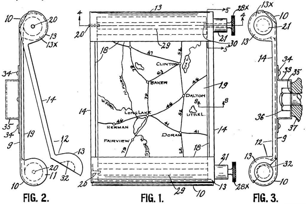 Этот ручной “навигатор” напоминал часы и состоял из бумажных карт и двух деревянных ручек, которые нужно было прокручивать вручную. В "часы" можно было втиснуть множество свитков, и их выбор зависел от конкретного маршрута, который нужно было совершить. В свое время прибор стоил 5 фунтов стерлингов, что эквивалентно 45-50 фунтов в настоящее время.