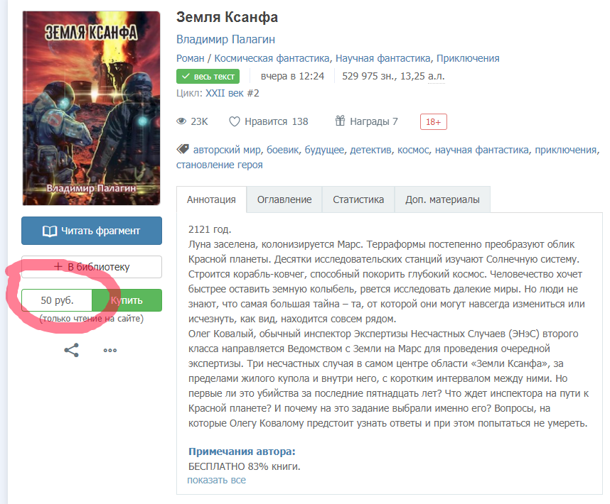 6. "Земля Ксанфа" стала платной — 50 рублей. Минимальная цена, которую разрешает поставить АТ за книгу — 49 рублей. Но мне цена показалась слишком... маркетинговой (нашел правильное слово). Я люблю честные цифры. Поэтом 50.