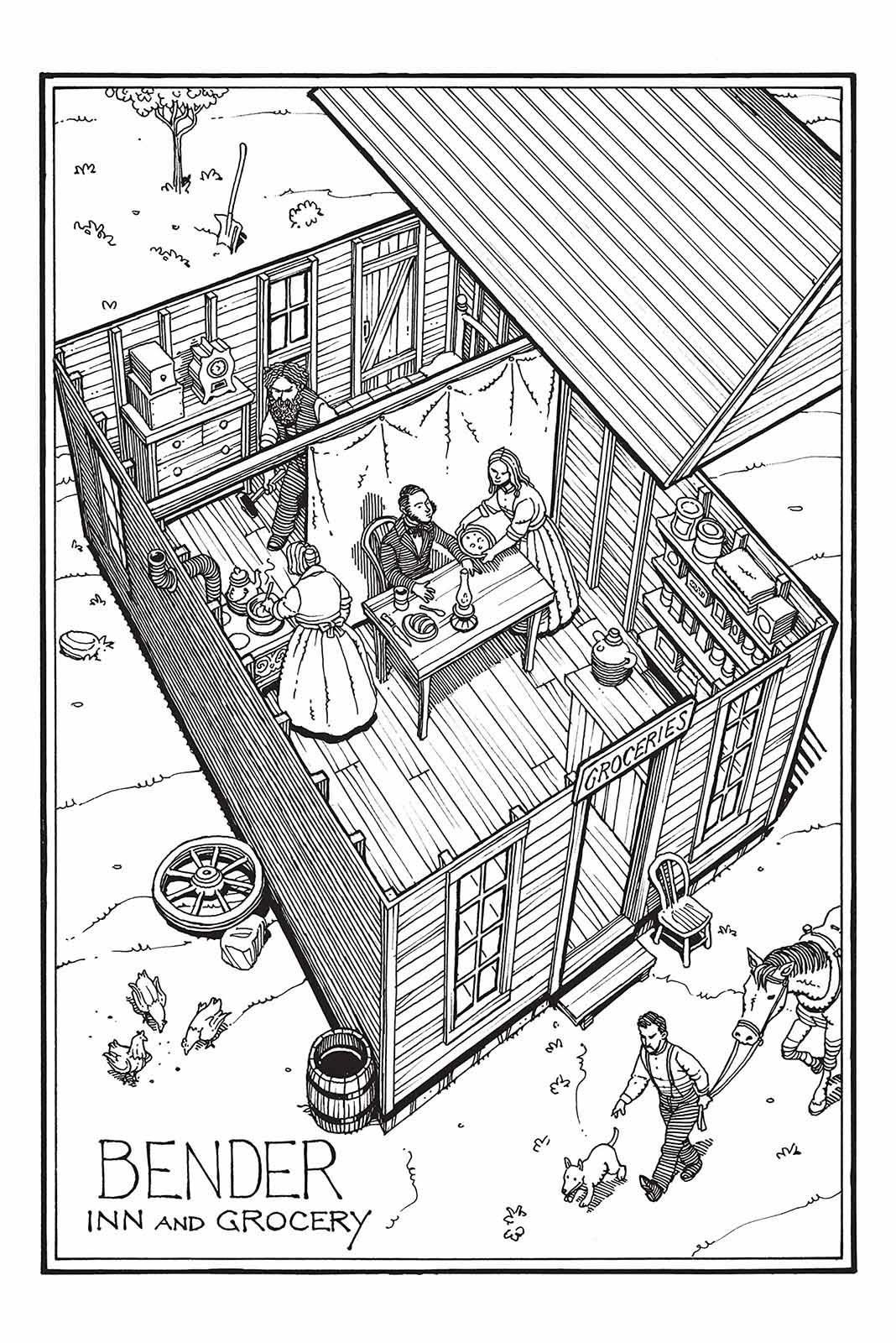 Через какое-то время к ним приезжают Марли и Кейт Бендер, мать и дочь. Старшие Бендеры были довольно таки замкнутые люди, говорили в основном на немецком, английский у них был настолько плох, что их практически не понимали. В отличие от них их дети, Джон и Кейт были общительными людьми. Кейт говорила всем, что она провидец и медиум, что привлекало в гостиницу еще больше народу. Джон говорил с небольшим акцентом, но людей отпугивало от него, то, что он мог засмеяться невпопад. Из-за этой особенности окружающие его считали слегка сумасшедшим.