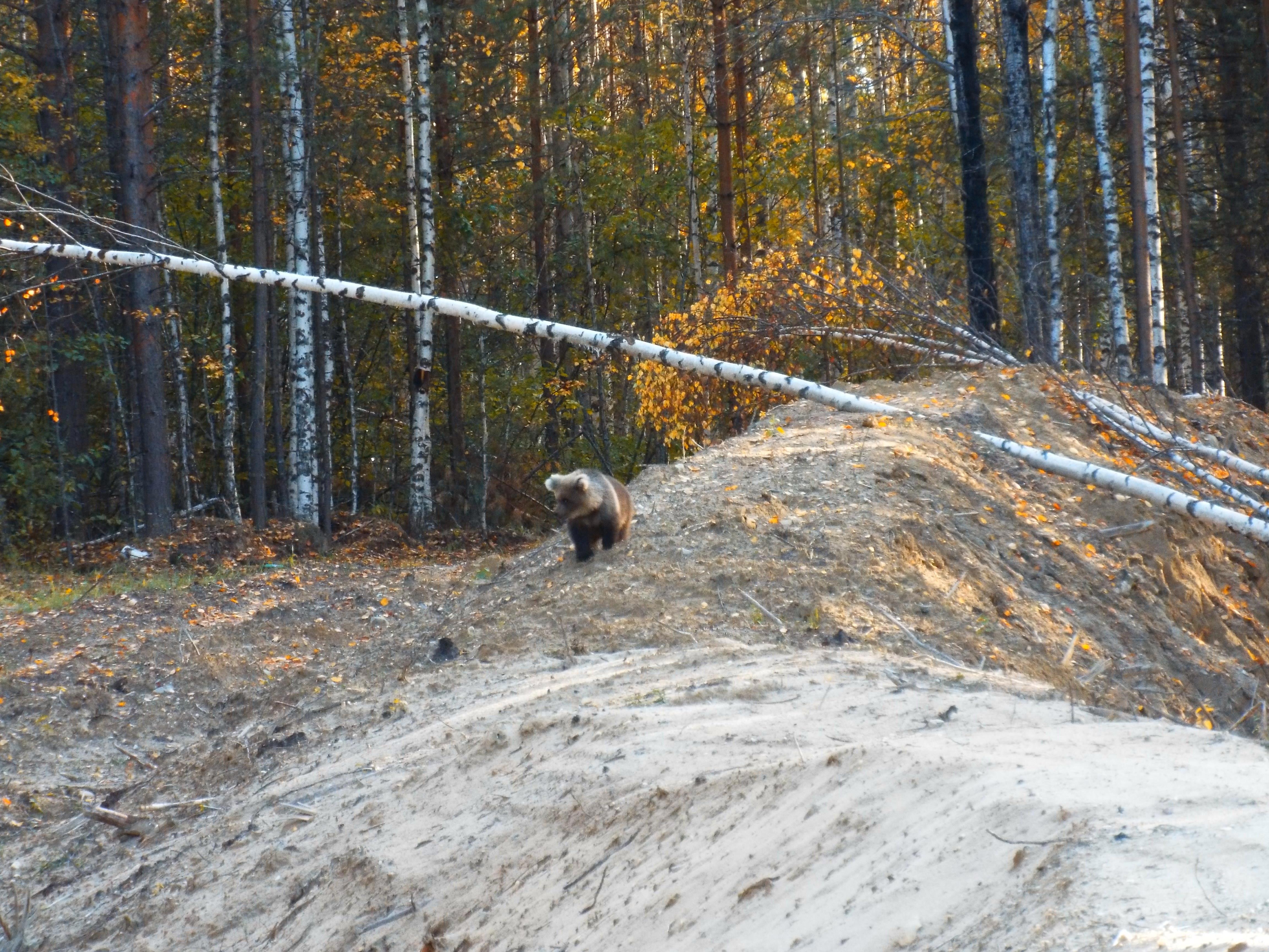 Я не придал этому значения. Осень же. Пора сбора дикоросов. В том числе - и той же клюквы. Видимо, какая-то бабушка и вышла на болото. Оно удобное: недалеко от дома и не особо опасное. Завязал шнурки, разогнулся, осмотрелся, и остолбенел, встретившись взглядами с ... В общем, не бабушка это оказалась. И даже не дедушка. А самый натуральный, бурый и косматый, медведь.