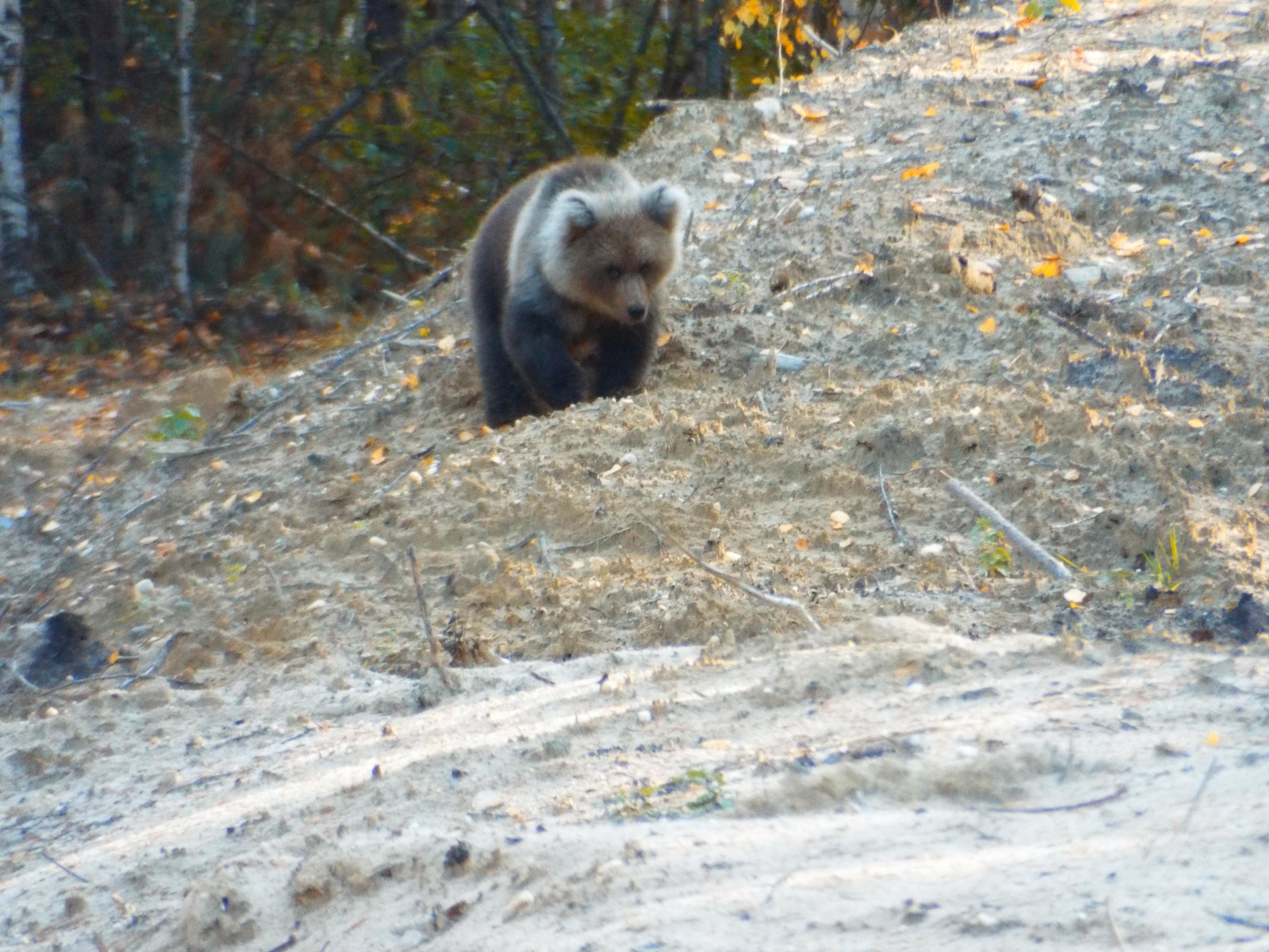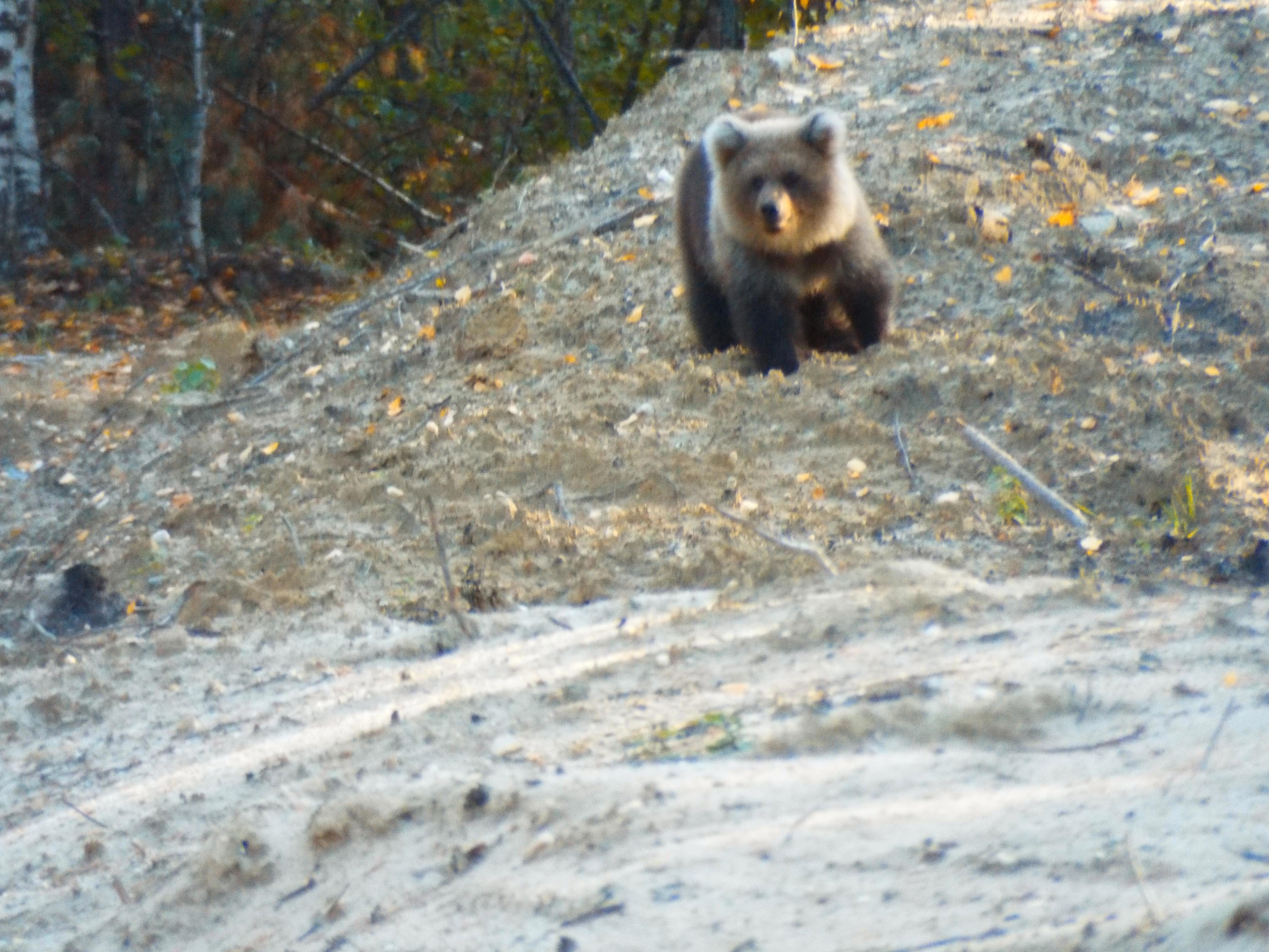 И не просто медведь, а медвежонок. Наверное, в тот момент у меня могли бы встать дыбом волосы - прямо через кепку. Но я стригусь очень коротко из соображений практичности. Так что мне просто показалось, будто мои колени начали сгибаться в противоположную естественной сторону. И стук в висках. Дело в том, что медвежата одни, как правило, не ходят. За ними присматривает мама. Большая, косматая и дюже подозрительная. И если ей покажется, что я опасен её косматышу, то полетят клочки по заулочкам.