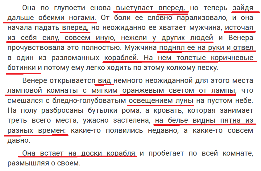 прикасается к стенкам кораблей? - каких кораблей? она внутри одного корабля; пауза, которую Венера с легкостью разрешила - нельзя разрешить паузу, сочетаемость; ногами начала зазывать; он подошел в плотную; температура тела неугомонно повышаться; - «Входящий» (Kristina Kamaeva) https://author.today/work/129493