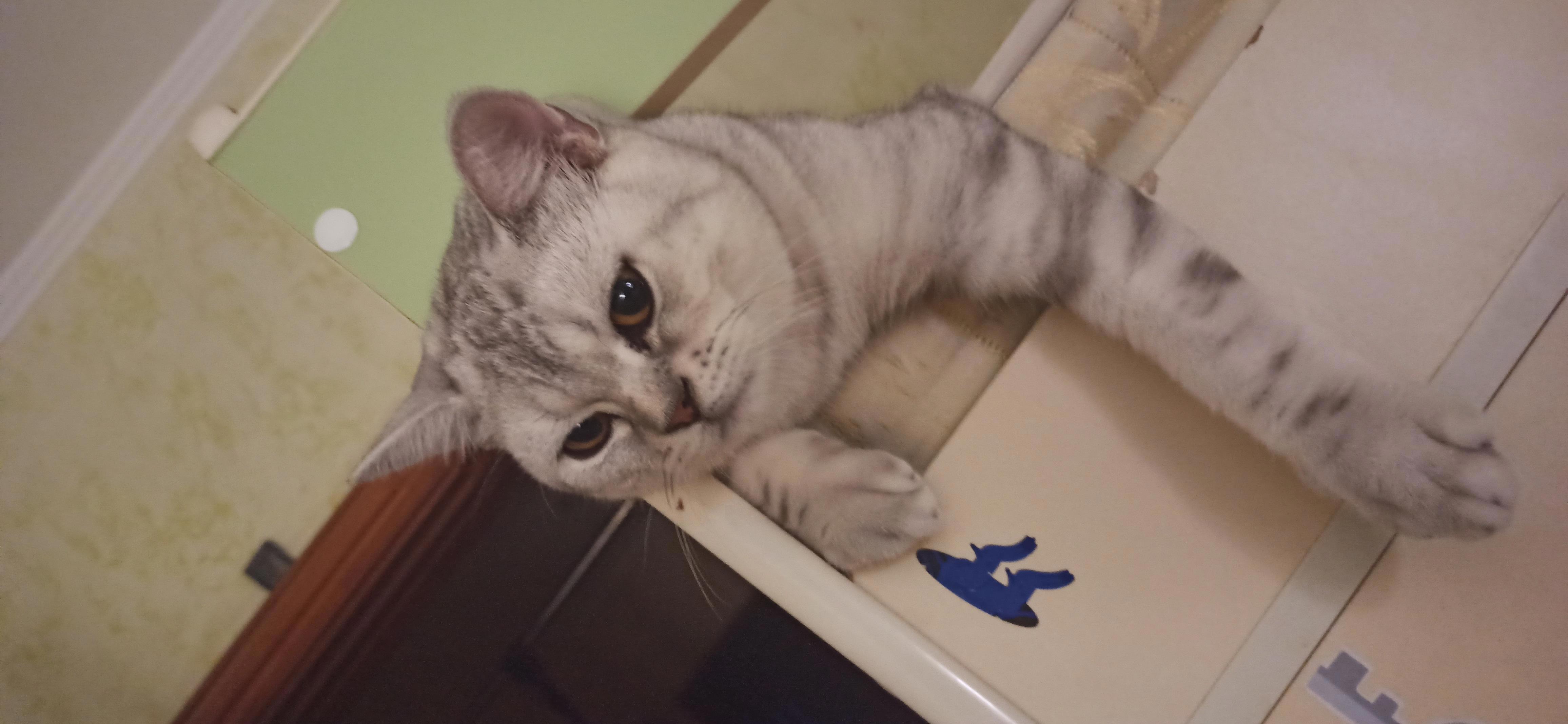 А ещё он научился запрыгивать на второй этаж двухэтажной кровати. И спрыгивать. Правда иногда он по-хозяйски кричит, чтобы его сняли оттуда. Удобно устраивать засады