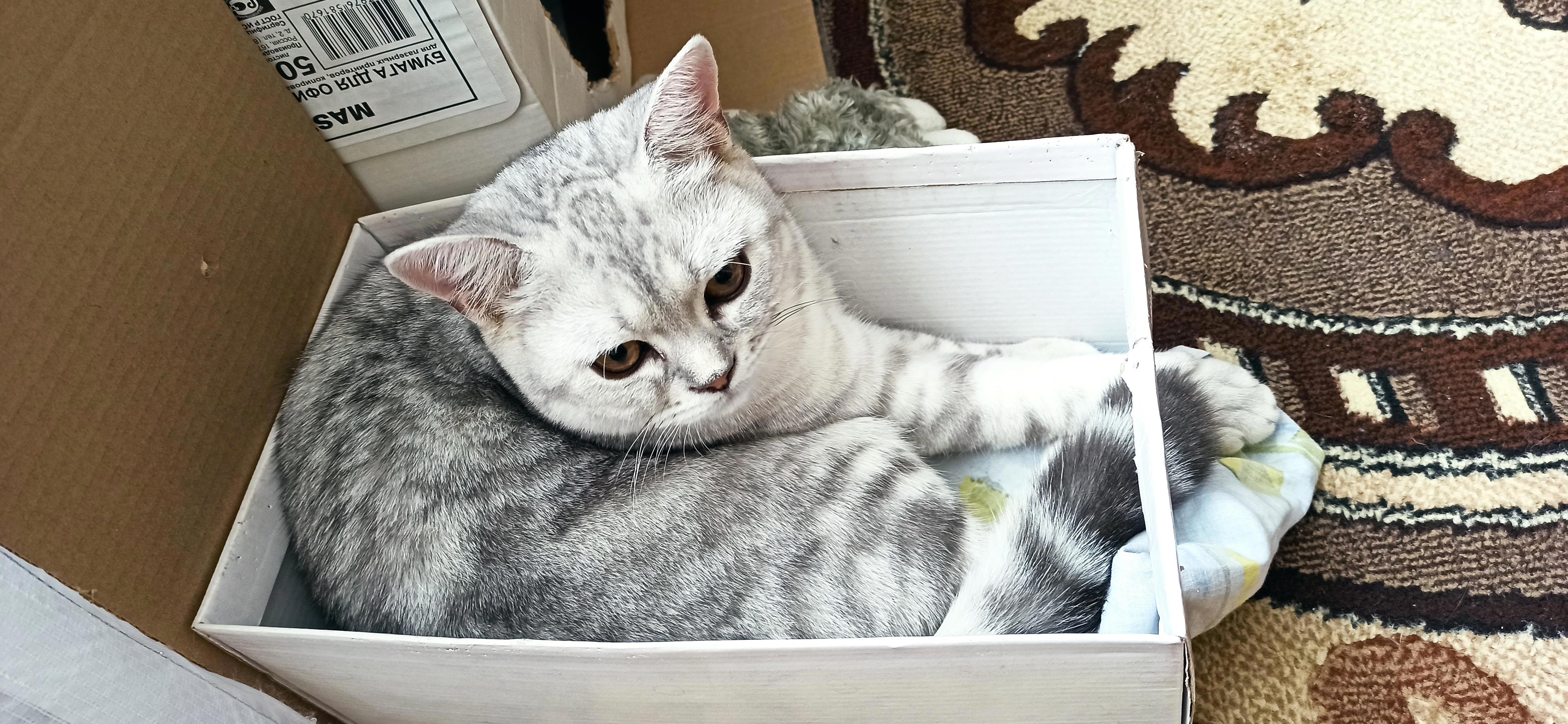 Залез недавно в коробку, где спал маленьким. Посмотреть и умилиться