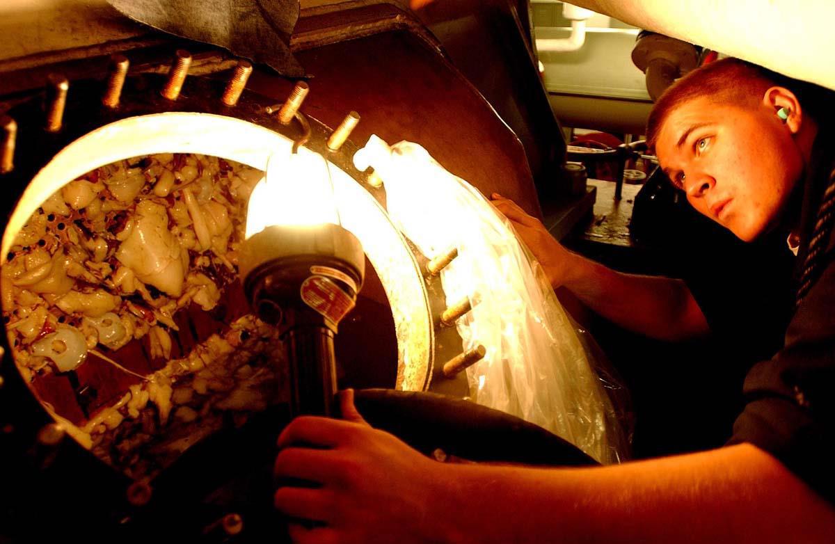 Нет, это не коптильня для морепродуктов. Это 3-й конденсатор ядерного реактора авианосца "Рональд Рейган" после четырехдневной стоянки в порту Вальпараисо, забитый сотнями кальмаров. https://afirsov.livejournal.com/654478.html?view=comments#comments