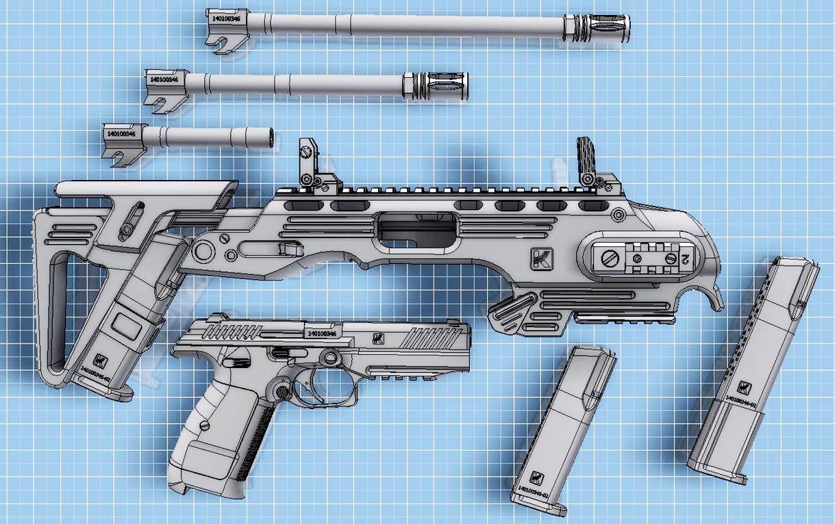 Вот тут и поняли конструктора, что шутки кончились, и можно, и даже нужно «оторваться по полной» с этими самыми «обвесами»! И нарисовали они тогда пластиковую коробку с прикладом, который можно и по длине менять, и под щёчку приподнять, и запасной магазин прикрепить, и сбоку прицепить чего-нибудь, и снизу, и сверху, и..., и..., и вообще. И чтобы ещё раз не возвращаться к теме, к штатному стволу добавили ещё длинный и совсем длинный (говорят, что ещё есть и ваще длинный!):