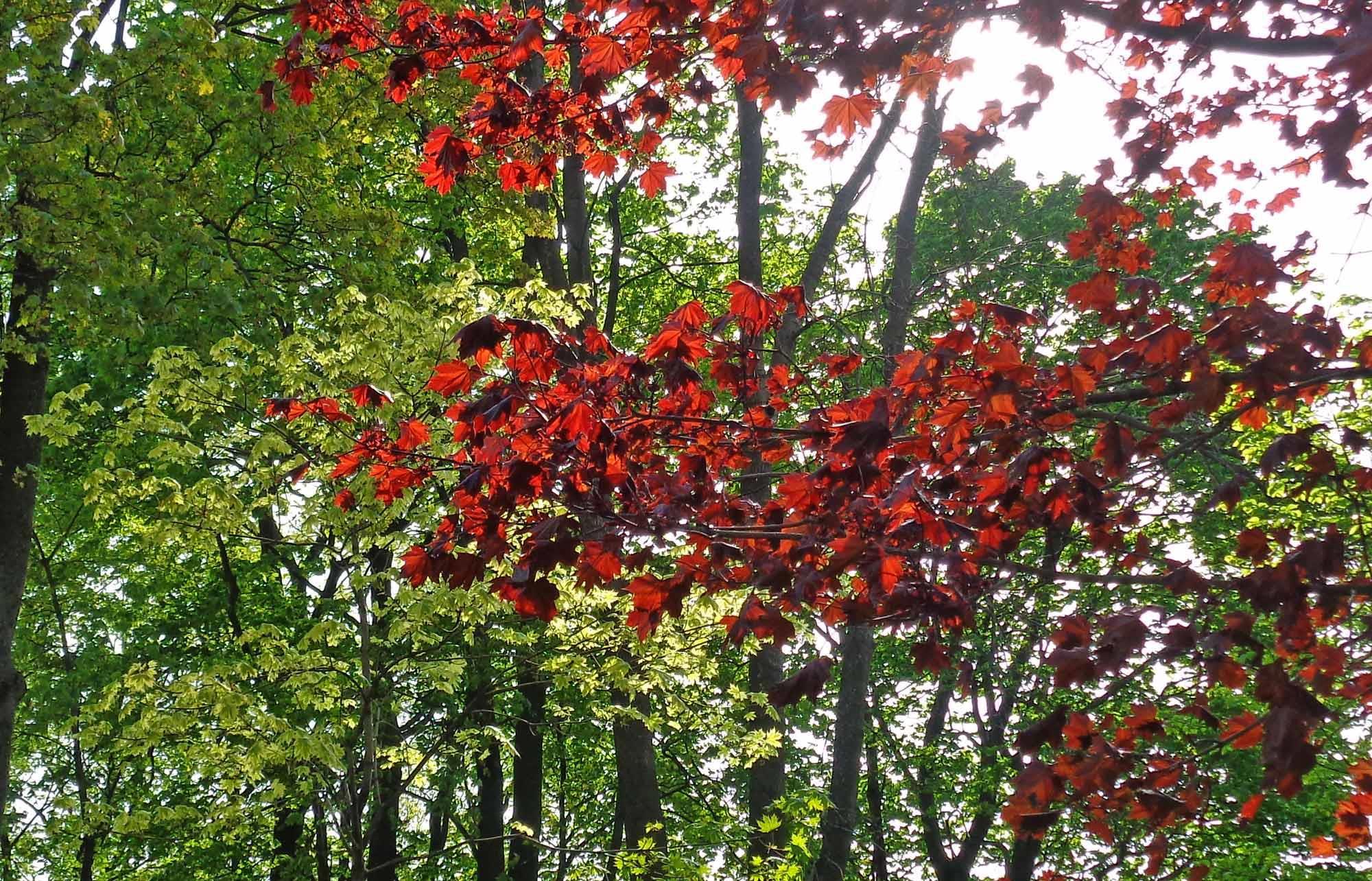 Это ещё не камелии. Это разнообразные клёны. Их тут три: красный, пёстрый и зелёный: