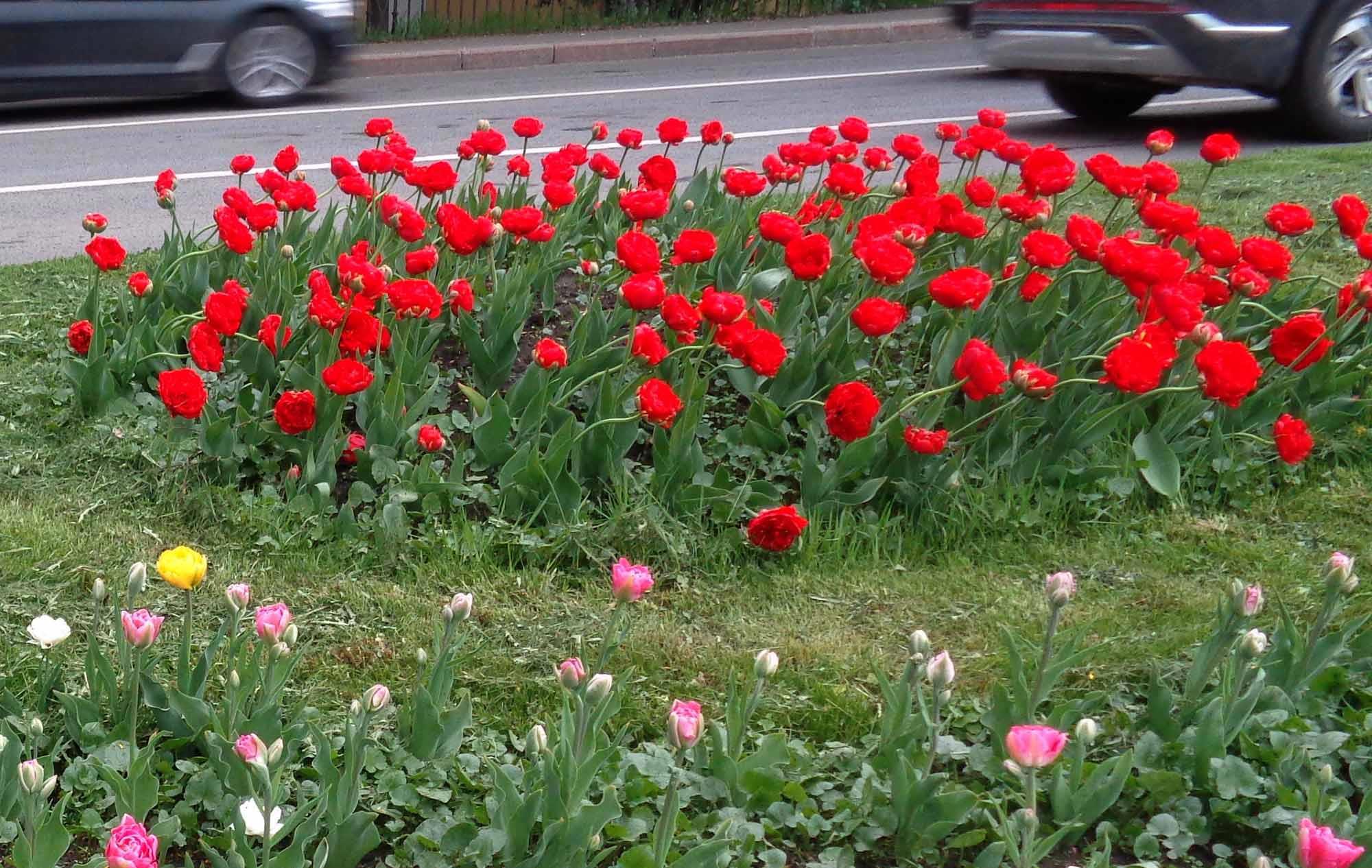 Это тоже не камелии. Это тюльпаны рядом с Каменноостровским проспектом:
