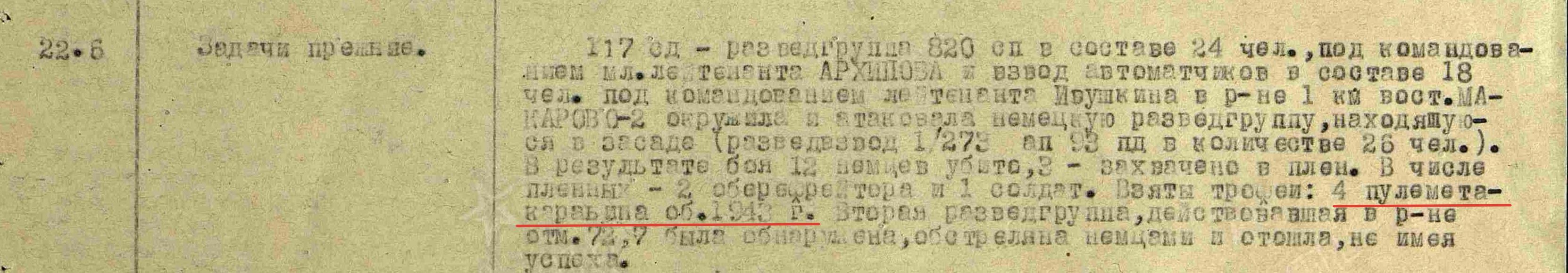 Очень возможно, что как раз бойцы Ивушкина и Архипова и есть те, кто добыли первые трофейные "машинен-карабины". История патрона образца 43-его года, автоматов Калашникова и всего остального начинается именно с этих людей.