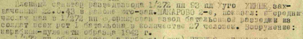 В этом документе две очепятки - немецкий полк не 273-й (такого в 93-й пд не было), а 272-й и МкБ еще не 43. Это прояснилось в ходе допроса пленного фрица. Вообще идея вооружить новейшим секретным оружием разведвзвод, который постоянно ходит в тыл противника - это как-то запредельно даже для сумрачных тевтонов. Такое в фантастике не напишешь, назовут роялем и обругают за недостоверность :)