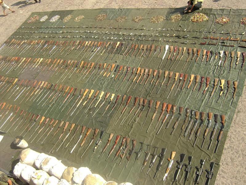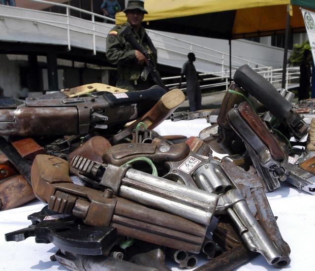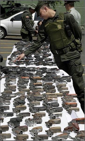 Автор: Николай БергКонфискованное оружие. Латинская Америка. Кучи на краю брезента - патроны. На другом краю - наркота в белых мешках.